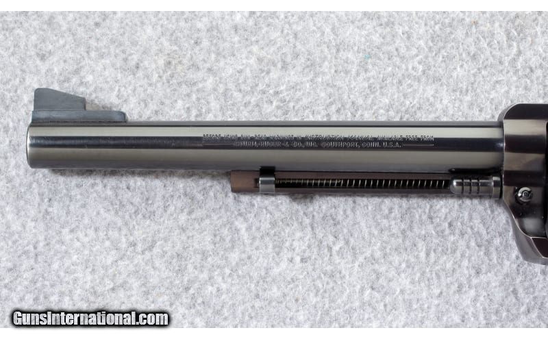 Description: The Ruger® Super Blackhawk® Single-Action Revolver is designed specifically to handle the chamber pressures and recoil of the powerful .44 Magnum cartridge. The Super Blackhawk is like Ruger's standard Blackhawk model; it has a solid cylinder-frame made of premium modern steel and uses all coil springs in the mechanism that retain their power for ultra-durability (instead of leaf-springs). The robust Super Blackhawk features an all-steel grip frame to add weight and balance the sidearm. The grip is slightly longer than that of the standard Blackhawk to provide a solid grip and disperse recoil over a larger area. The back of the trigger guard has been squared off to give more room for the shooter's knuckles to protect them from punishing recoil. The hammer spur on the Super Blackhawk is lower and wider; the trigger is wider as well. An unfluted cylinder also adds weight to reduce recoil, and strength to withstand high-pressure .44 magnum loads. The rear sight is click adjustable for both windage and elevation and is protected by integral frame topstrap ribs. The Ruger Super Blackhawk Single-Action Revolver represents a great value in a big game hunting or target-shooting sidearm. Made in USA 1980. .44 Magnum SOLD Metal Condition: Very good with a little holster wear on the muzzle and cylinder front edge Wood Condition: Very good with some dents and scratches Bore Condition: Excellent with signs of use Barrels: 7.5 inch barrel Triggers: Single action Weight: 48 oz. Sights: Adjustable rear sight with ramped front blade Item Location: Lehi, UT |