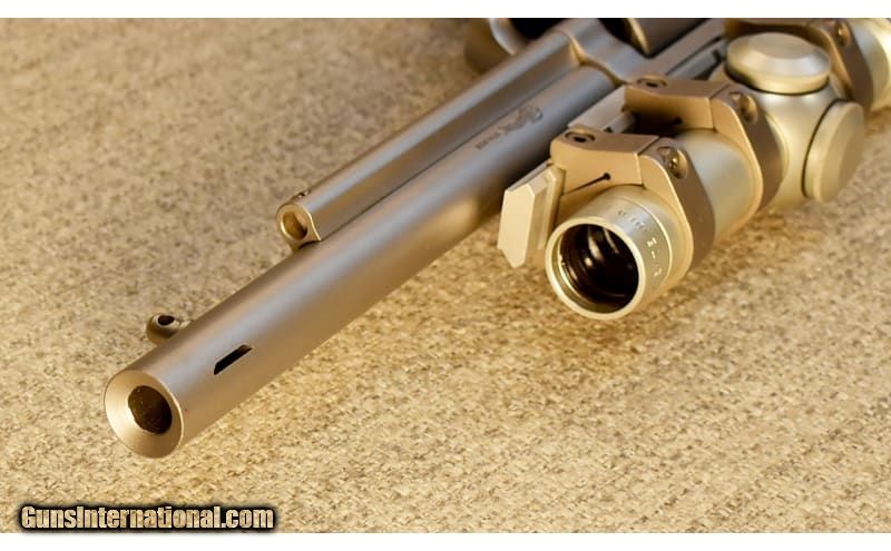 Description: This is a pre-owned Ruger New Model Blackhawk in .44 Remington Magnum, the Stalker model created by Magnum Sales, a division of Mag-Na_Port, featuring a Leupold scope, ported barrel with recessed crown and an action job .44 Remington Magnum SOLD Metal Condition: "Very good with a few small scratches, a small ding on the left side above the trigger and light cylinder drag marks Wood Condition: Very good with light handling marks Bore Condition: Clean with bright lands Barrels: 8 3/8 Triggers: SA Butt Pad: Pachmayr Presentation grips Weight: 4 lbs. Sights: Leupold M8 2x Extended Eye Relief scope Item Location: Glendale, AZ |