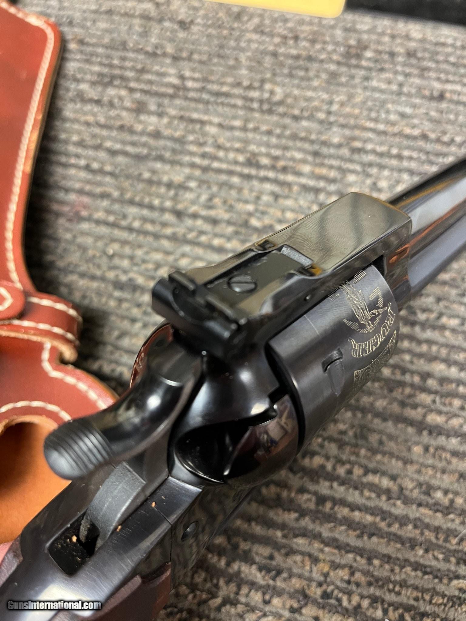 Description: Guns Listing ID: 590734 Ruger Super Blackhawk Bisley revolver in 44 magnum. Mfg in 1987. Roll engraved cylinder. 7 1/2" barrel. Includes leather holster. Nice gun ! Manufacturer: RUGER Model: NEW MODEL SUPER BLACKHAWK BISLEY Caliber Info: .44 MAGNUM Condition: Used - Non-Certified Barrels: 7.5" BARREL Action: REVOLVER Finish: blued Price: $895.99 Contact Seller |