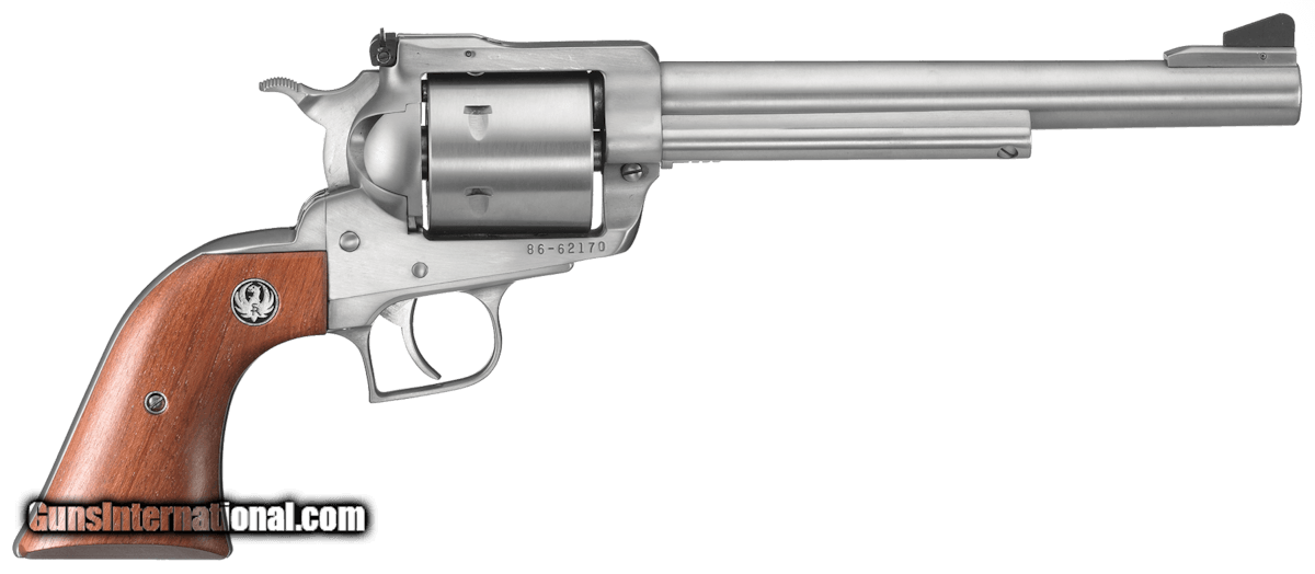 Description: Guns Listing ID: 1072 The Ruger Super Blackhawk Standard is a single-action 6-shot revolver similar to the Blackhawk but designed to handle the 44 Magnum cartridge. A slightly larger-sized steel grip frame adds weight and balance helping to more evenly disperse felt recoil while the squared-off trigger guard aids in protecting knuckles. In addition the hammer spur and trigger are wider and all coil springs contribute to durability. Available in different barrel lengths and finishes the Super Blackhawk Standard is an ideal large-framed revolver to carry on big game hunts. Details Caliber 44 Rem Mag - Grips Hardwood - Front Sight Ramp - Barrel Length 7.50 - Material Stainless Steel - Capacity 6 - Rear Sight Adjustable - Twist 120 RH - Finish Satin Stainless - Overall Length 13.38 - Weight 48 oz. - Grooves 6 SOLD Manufacturer: RUGER Model: SUPER BLACKHAWK Caliber Info: 44 REMINGTON MAGNUM Condition: new Barrels: 7.5 BARREL |