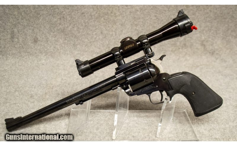 Description: .44 Mag, 10 1/2 in. barrel, 6 shot, blue finish, Dragoon style grip frame with square back trigger guard, black grips, ramp front and adj. rear sights, Leupold LER scope installed. .44 Magnum SOLD Item Location: Greenville, SC |