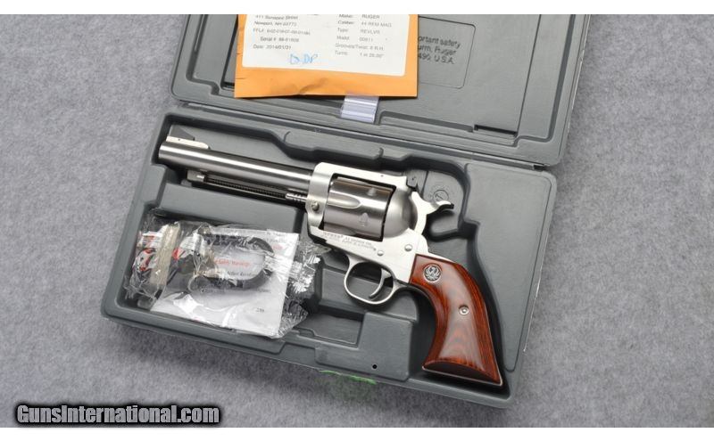 Description: Ruger NM Super Blackhawk in 44 Magnum, Pre-owned in excellent condition with factory carton. SOLD Caliber Info: 44 Remington Magnum Metal Condition: Stainless Steel , Excellent Condition Wood Condition: Excellent Bore Condition: Bright and Sharp Barrels: 5 1/2 Inch Triggers: SA Stock: Laminated Wood Weight: 45 Ozs Sights: Adjustable Rear Sight, Ramped Front Item Location: Lone Tree, CO |