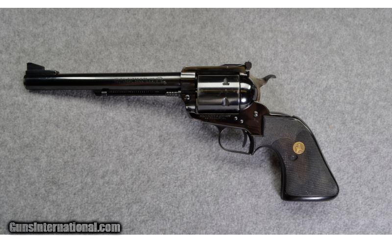 Description: This Super Blackhawk is a three screw with Pachmayr grips. SOLD Caliber Info: .44 Mag. Chambers: 6 rounds Metal Condition: Good. Handling and bluing wear, some dings. Bore Condition: Very Good. Clean. Barrels: 7.5 inch Triggers: Ridged Weight: 3.20 pounds Sights: Windage adjustable square notch with serrated ramp. Item Location: Springfield, OR |