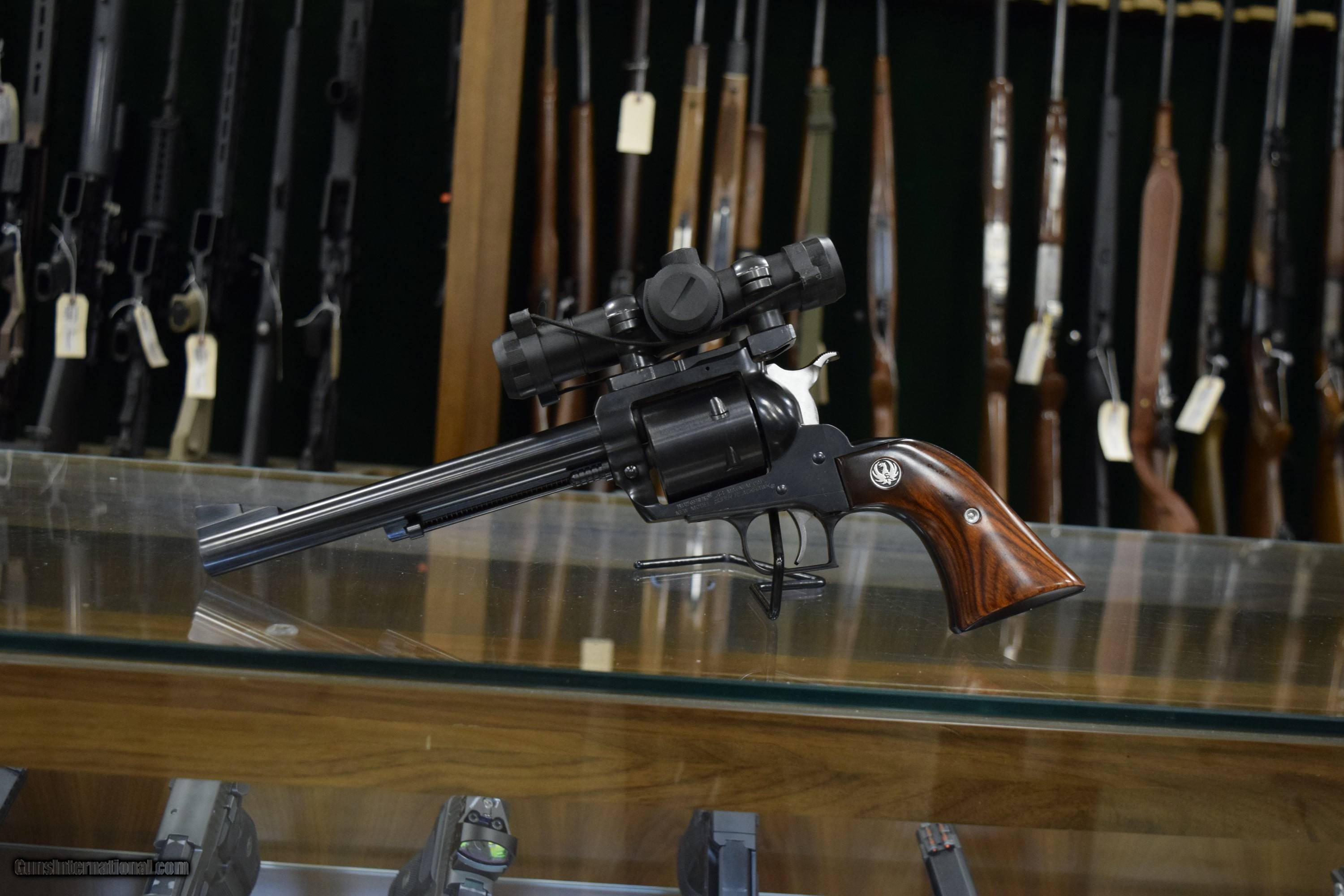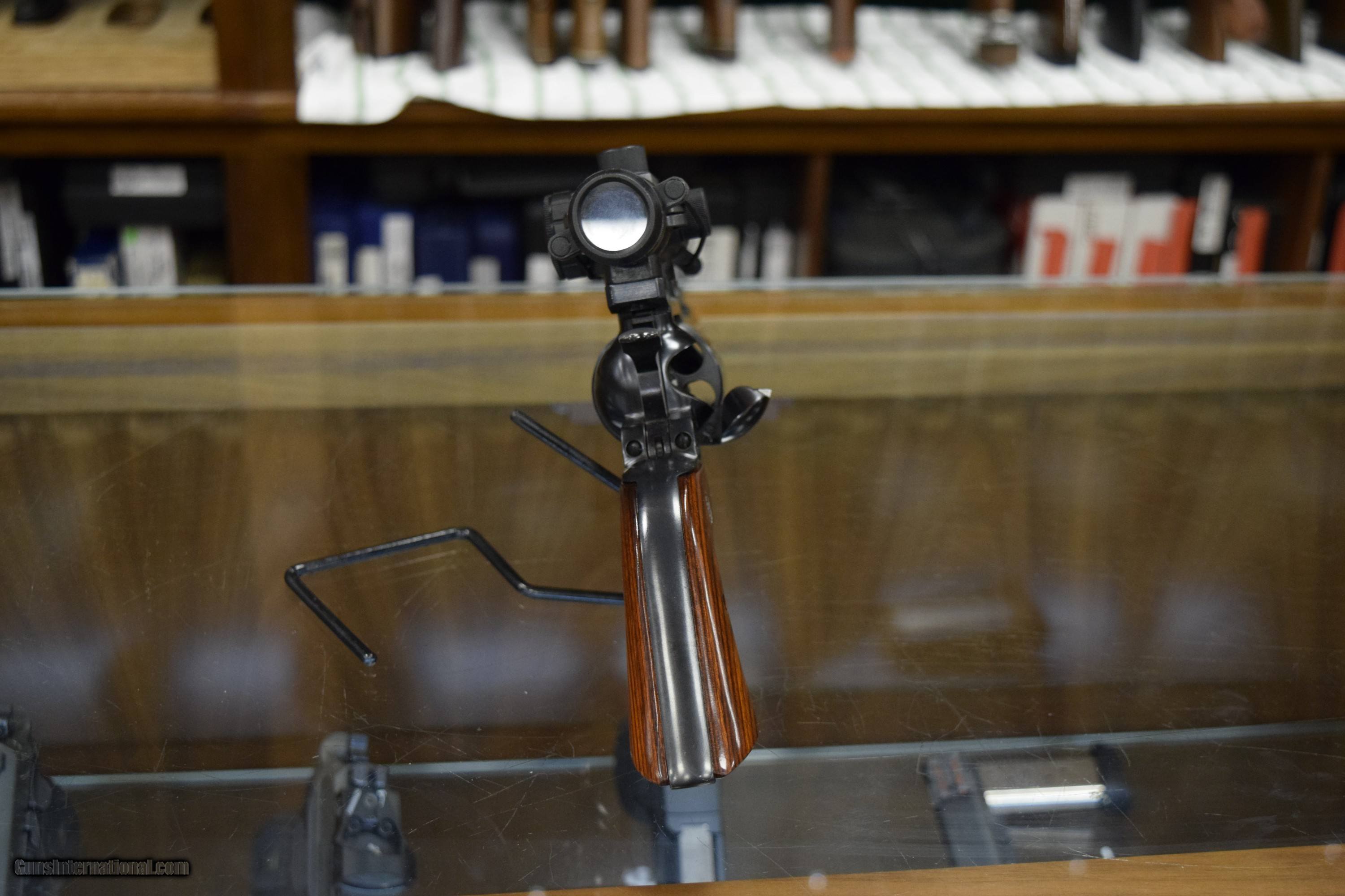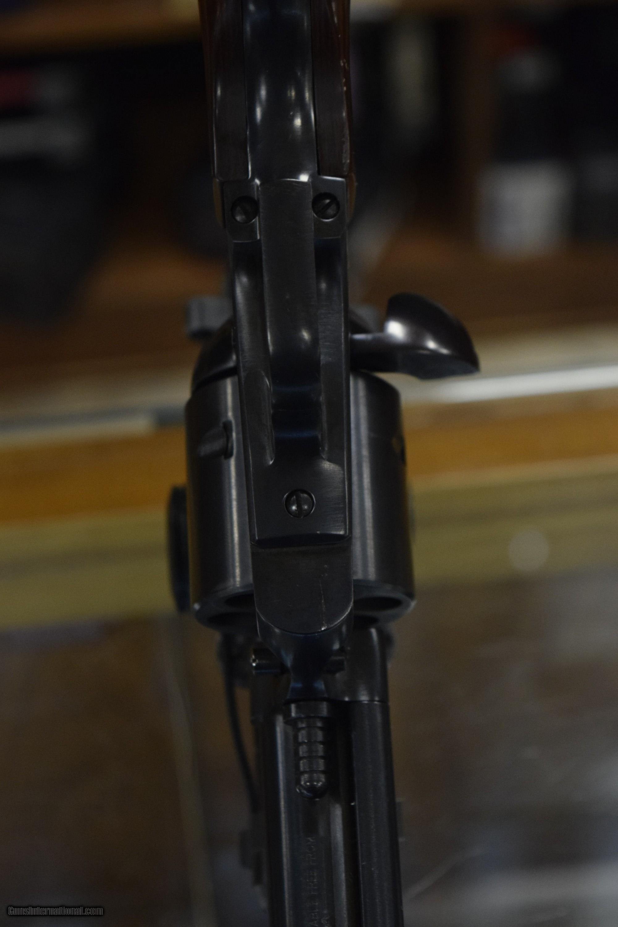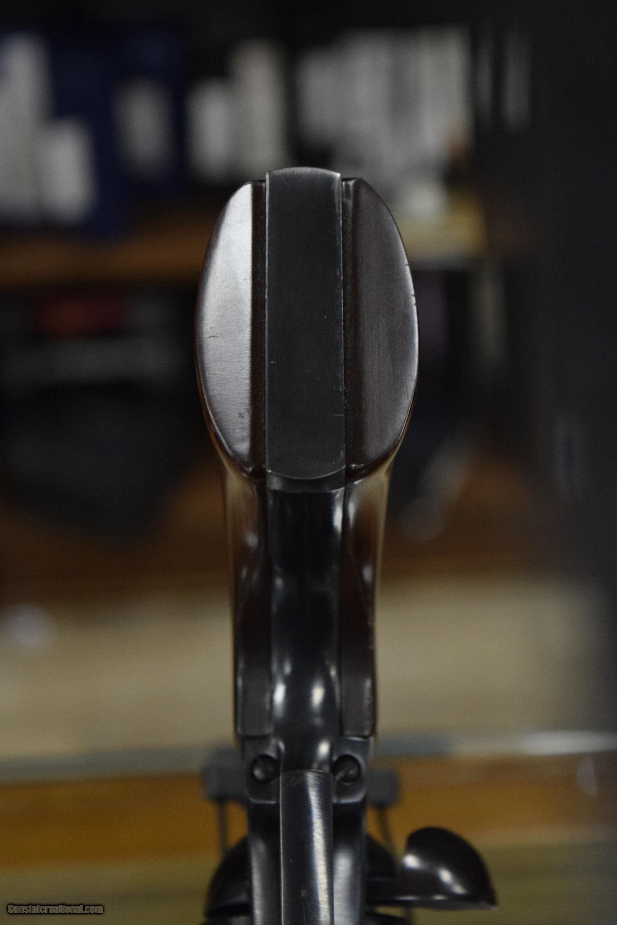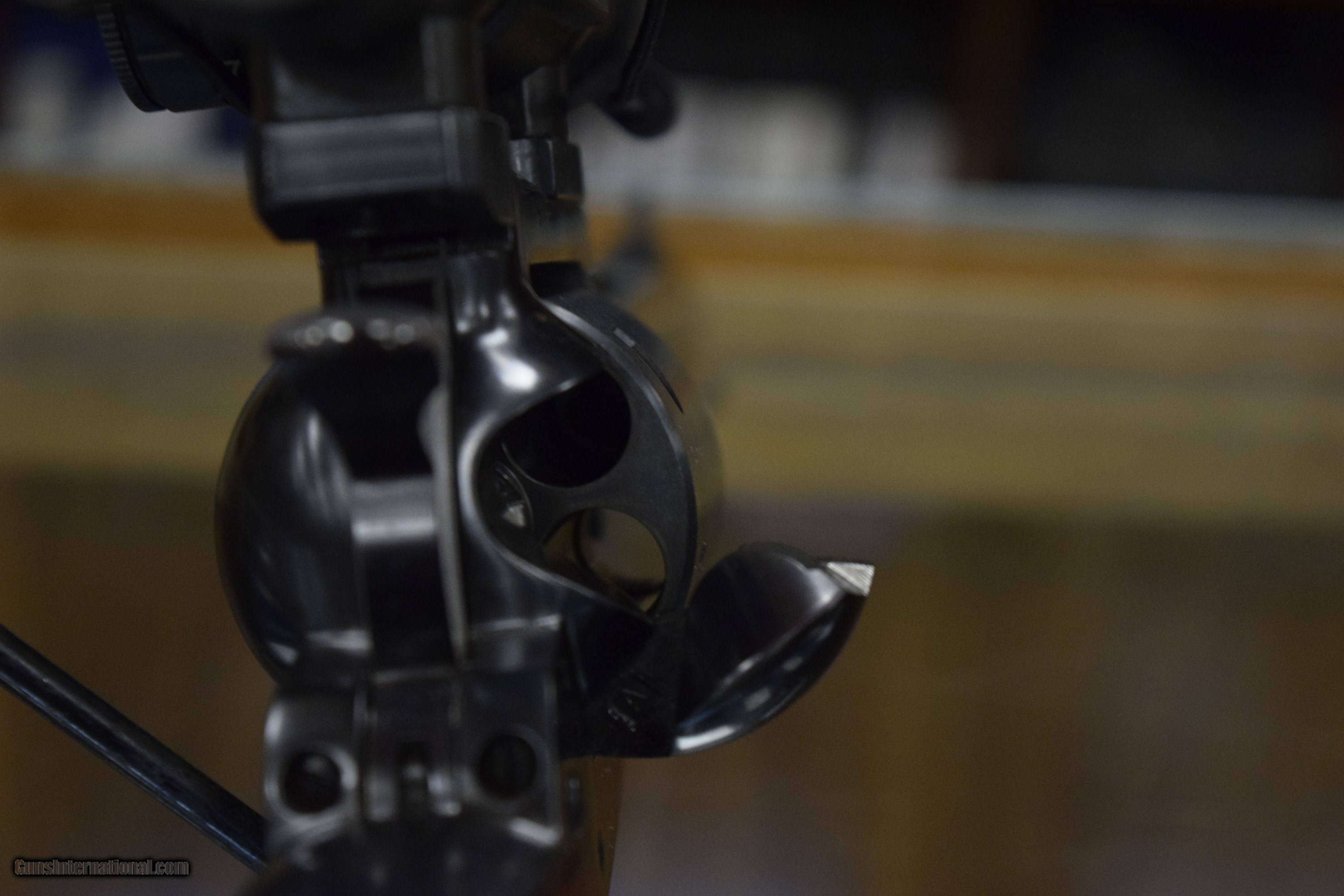Description: Traditional western-style, hand-filling grip has long been acknowledged as one of the most comfortable and natural-pointing of any grip style. Transfer bar mechanism and loading gate interlock provide an unparalleled measure of security against accidental discharge. Durable coil springs throughout for maximum reliability. Fixed ramp front sight and adjustable rear sight. Models chambered in the powerful .44 Magnum, also accept factory .44 Special cartridges, which deliver superb accuracy and milder recoil. Cold hammer-forged barrel results in ultra-precise rifling that provides exceptional accuracy and longevity. This item does not come with case. Overall is great with little to no wear present form use.