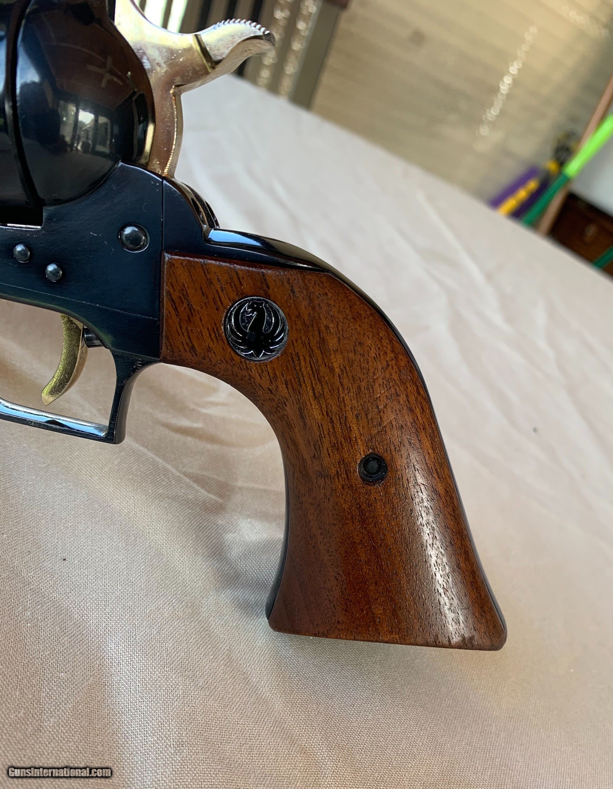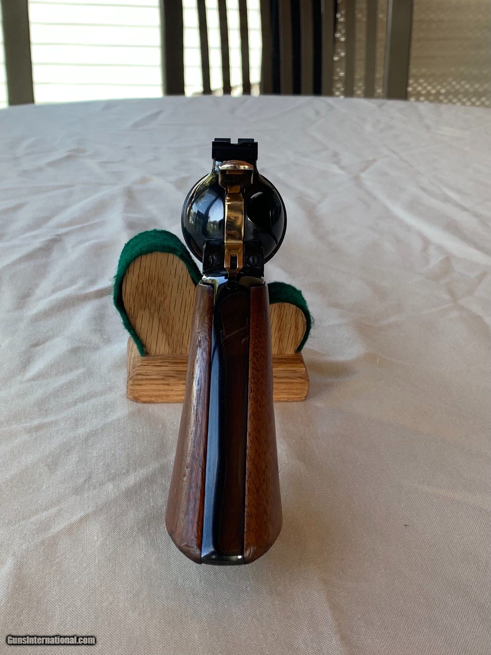 Description: Ruger Super Blackhawk in 44 Magnum. Serial number 80-02160 . Early 3 Screw . Custom Shop Order. Gun is Sporting a 7 1/2" Barrel . Factory Target Sights . Flattop Frame . Original Factory Target Sights . Rear sight is adjustable ! Gun was ordered with Factory Luster Blue Finish. Gun was ordered with 24 Karat Gold finish Hammer and trigger . Custom Shop Order ! Gun is near mint original condition with no box . Bore and mechanics are Excellent plus . Factory Wood grips are Excellent. Super nice Example of a Custom Ordered Ruger 3 Screw Super Blackhawk in 44 Magnum. Please review my photos and email me with any questions ? 3 day inspection as allways. Thank you for looking Little Jo SOLD Handgun Caliber: .44 Manufacturer: Ruger Model: Super Blackhawk Custom |