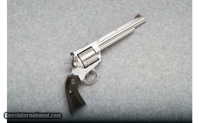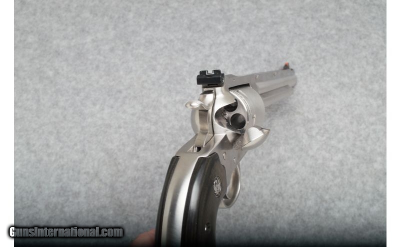 Description: Used. "Hunter" Model. SOLD Caliber Info: .44 Rem. Mag. Metal Condition: Excellent Wood Condition: Excellent Bore Condition: Clean and sharp Barrels: 7 1/2 Triggers: Smooth stainless Stock: Laminated hardwood grips Weight: 52 oz. Sights: Adjustable rear; blade front with red insert Extras: Hard case; scope rings. Item Location: Sun Prairie, WI |