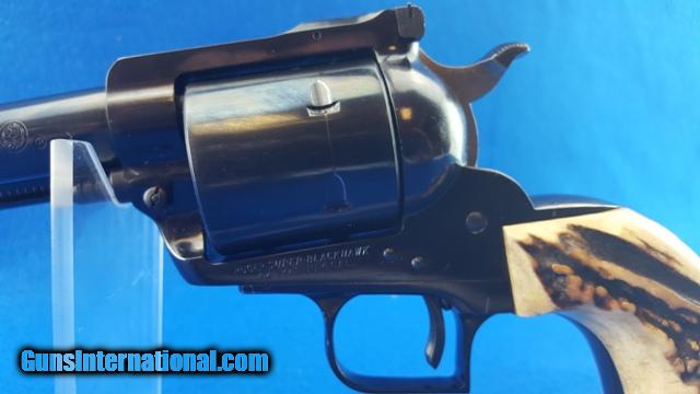 Description: Ruger Super Blackhawk 44 mag 7 1/2 inch / larger "Dragoon" grip frame with square back trigger guard, unfluted cylinder, adj. sights, stag grips. Ser# 4079, 98% overall., Does not have the transfer bar update. Very clean, smooth action, clean bore. add 3% for C/C S&H $ 25.00 SOLD Manufacturer: RUGER Model: SUPER BLACKHAWK Serial Number: 4079 Caliber Info: 44 MAG |