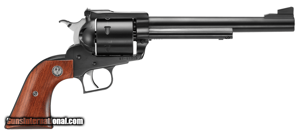 Description: Guns Listing ID: 53152 The Ruger Super Blackhawk is a single-action, 6-shot revolver similar to the Blackhawk but designed to handle the 44 Rem Mag cartridge. A slightly larger-sized, steel grip frame adds weight and balance, helping to more evenly disperse felt recoil, while the squared-off trigger guard aids in protecting knuckles. In addition, the hammer spur and trigger are wider, and all coil springs contribute to durability. The Super Blackhawk is a hunting revolver well-suited for game up to the size of elk, with even much larger game falling prey to its power. SOLD Manufacturer: RUGER Model: SUPER BLACKHAWK Caliber Info: .44 MAGNUM Condition: new Barrels: 7.5 BARREL |
