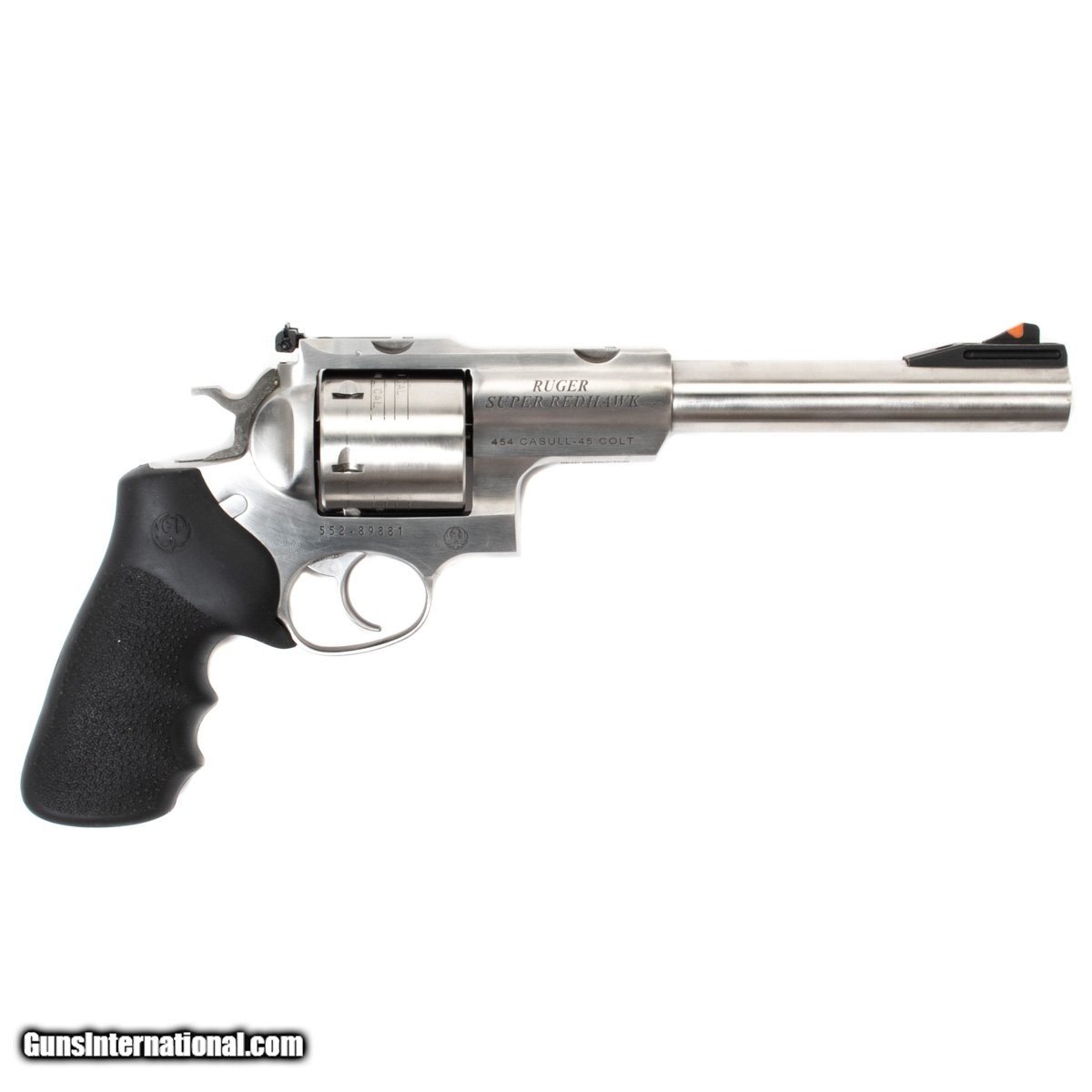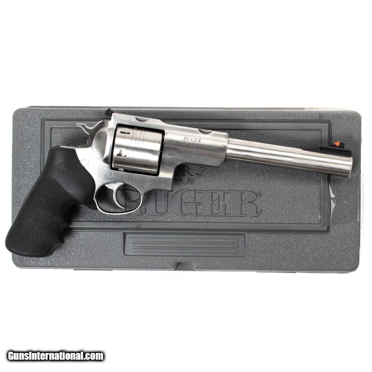 Description: Guns Listing ID: 590041 This Ruger comes with the original case, an adjustable rear sight, and rubber grips. Get the best bang for your buck when you get a Certified Used Firearm . When you see the Certified Used stamp on any of our firearms, you can be confident that you‚re getting exactly what you want – a gun only in very good to excellent condition and held to the highest quality standard. All Certified Used Guns come with a ‚no questions asked‚ return policy . Manufacturer: RUGER Model: SUPER REDAWK Caliber Info: .454 CASULL/.45 LC Condition: Used - Certified Barrels: 7.50" BARREL Action: REVOLVER Finish: stainless Weight: 3.4 Price: $899.99 Contact Seller |