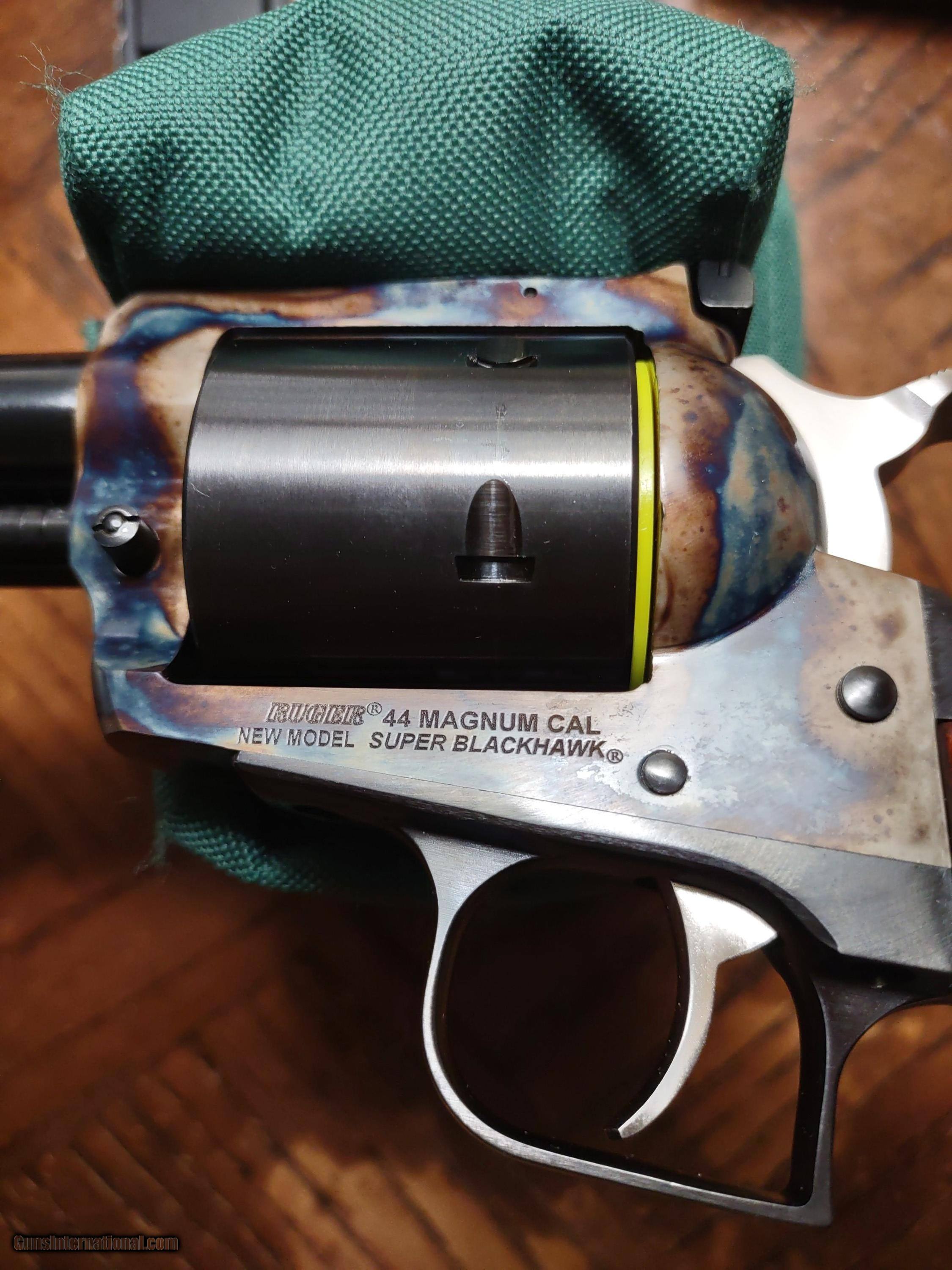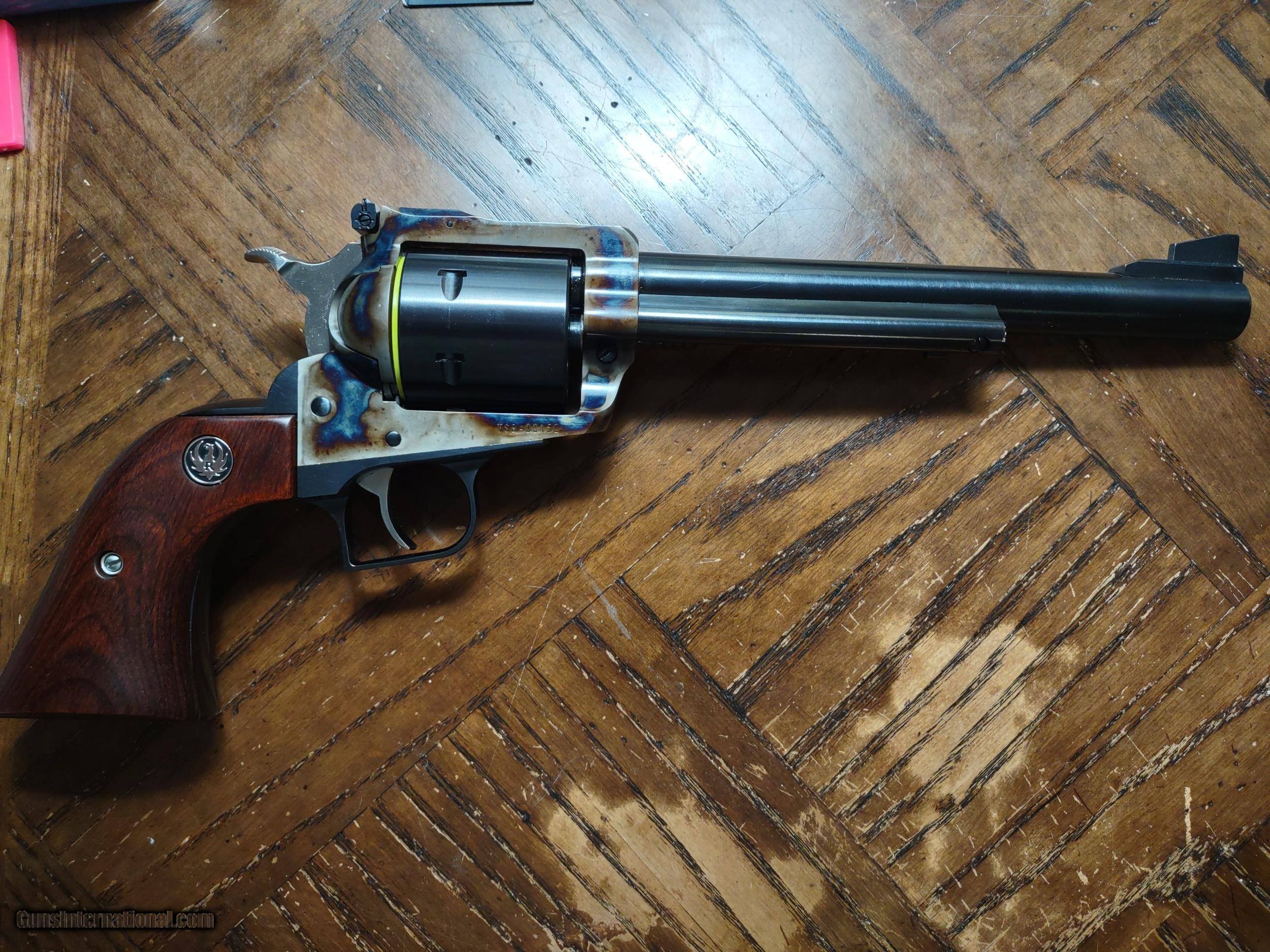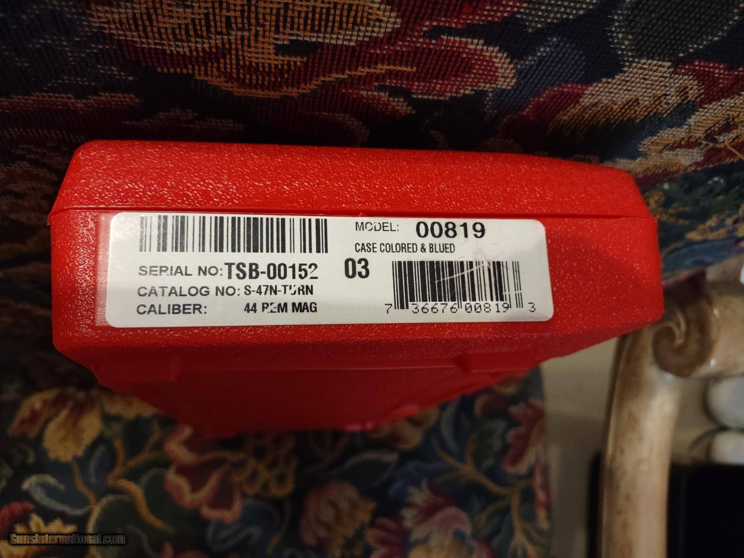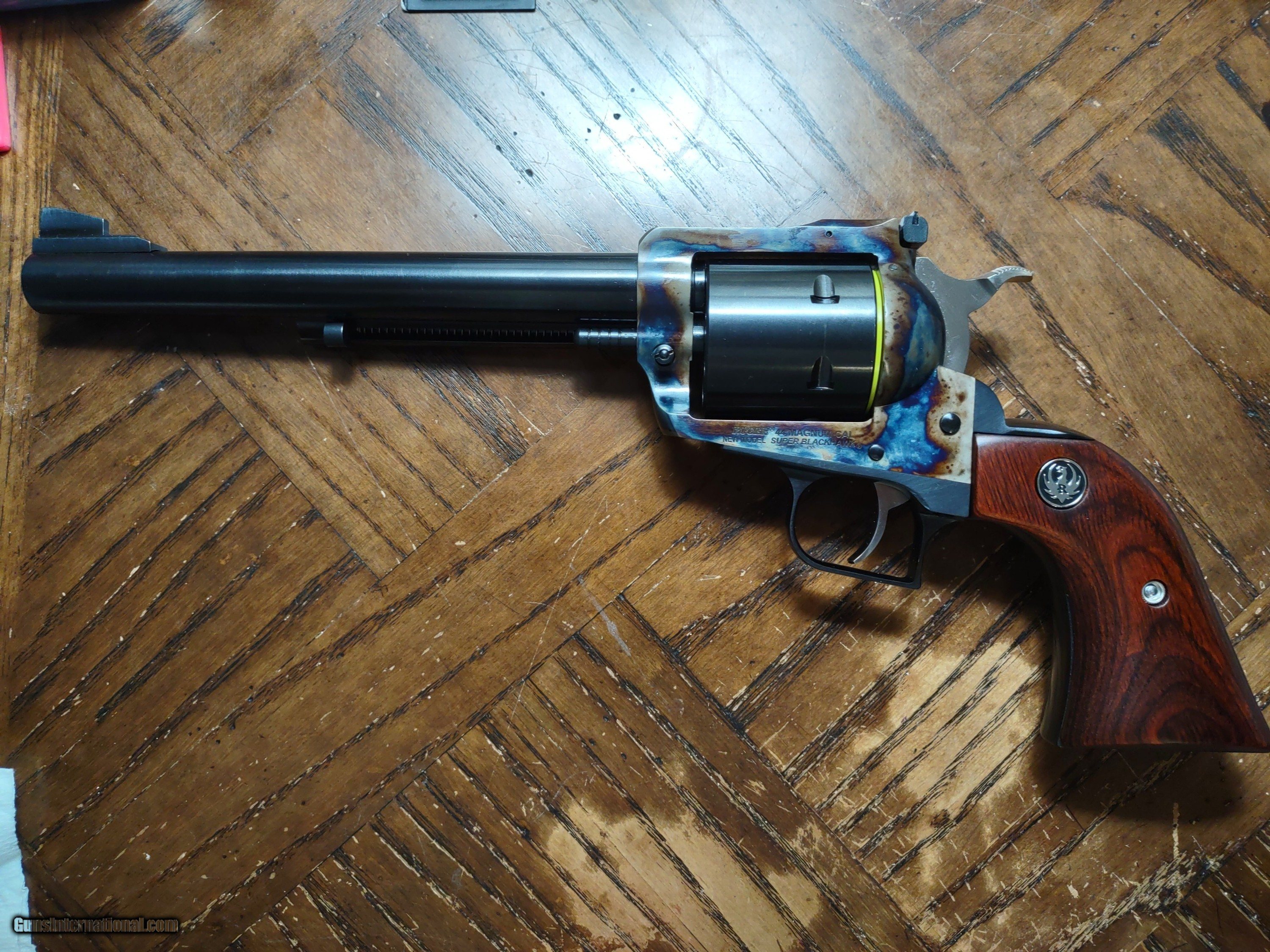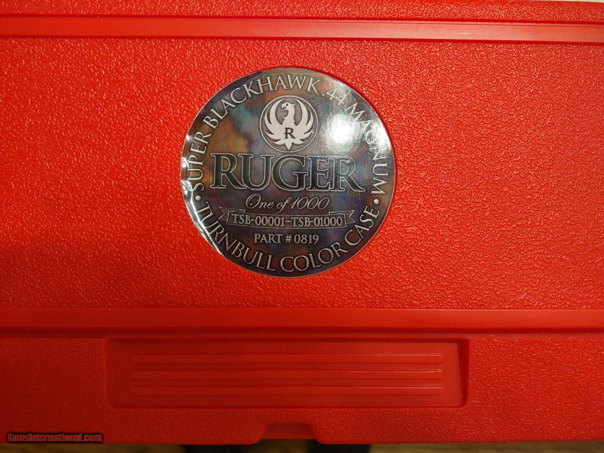 Description: RUGER NEW MODEL SUPER BLACKHAWK TURNBULL LIMITED EDITION #152 of 1000, .44 Magnum with 7 1/2" barrel, non-fluted cylinder, color case hardened frame, blu finish, walnut grips with Ruger medallions, adjustable rear sights, smooth trigger and knurled hammer. Absolutely gorgeous...never been shot... sparkling bore..es with red factory original hard polymer box with lock and owner's manual. The price is $1275 including UPS shipping to the FFL dealer near you. Call or text me at 318-780-4242 if you are interested. Meanwhile, enjoy the pictures. SOLD, CHECK IN THE MAIL! SOLD Manufacturer: Ruger Model: New Super Blackhawk Serial Number: TSB-00152 Barrel Length: 7 1/2 Bore: Perfect Ejectors: Single action Condition: Perfect Metal Condition: Perfect Wood Condition: Perfect Bore Condition: Perfect, glossy Barrels: Single Action: Single Triggers: Single Sights: Fixed front, adjustable rear Manufacture Date: 2021 Engraving: None Extras: Lock, owner's manual Case: Hard polymer Item Location: Shreveport, Louisiana |