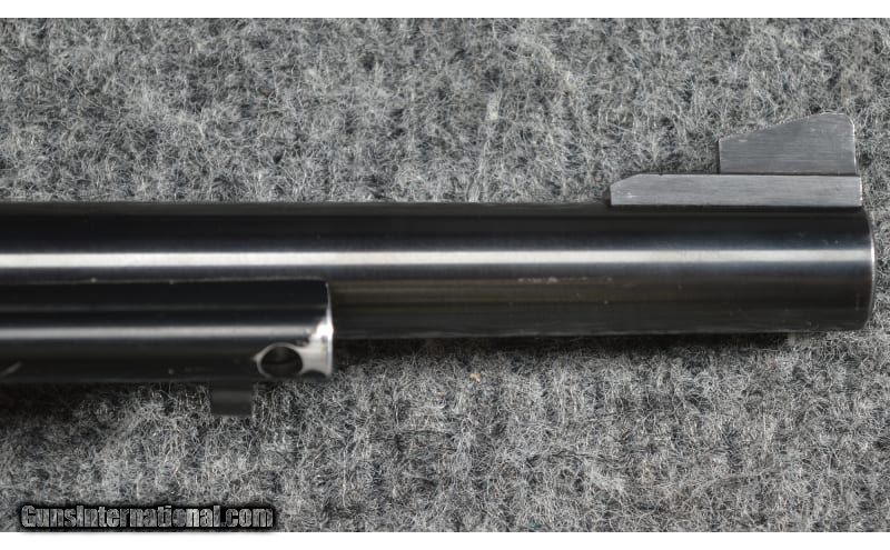 Description: Revolver bore is in very good condition. Finish has some wear around the muzzle and cylinder. Wood grips have some minor scuffs and scratches. Cylinder is tight and has good timing. Trigger is crisp. .44 Magnum SOLD Metal Condition: Very Good Wood Condition: Very Good Bore Condition: Very Good Barrels: 7.5 Triggers: SAO Weight: 3.05 lbs. Sights: "Fixed front fin, adjustable rear Item Location: Gainesville, VA |
