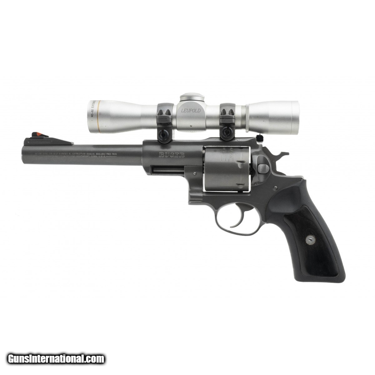 SN: 551-73555. Made in 2000, 454 Casull/45LC caliber with a 7.5"" barrel. Big bore stainless steel revolver. Has a Leupold silver 4X scope mounted. Very good condition.
