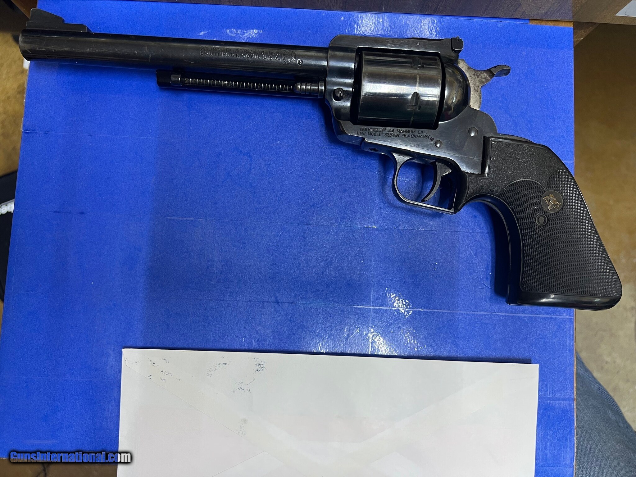 Description: Guns Listing ID: 756821 Serial number look up year manufactured: 1978 Brand: Ruger Model: New Model Super Blackhawk Caliber: .44 Magnum Rounds: 6 rounds Barrel length: 7.5” Missing some bluing on end of barrel. Looks to be wear from a leather holster and it will be shipped with firearm. SOLD Manufacturer: RUGER Model: NEW MODEL SUPER BLACKHAWK Caliber Info: 44 MAG Condition: Used - Non-Certified Barrels: 7 BARREL Finish: BLUED |