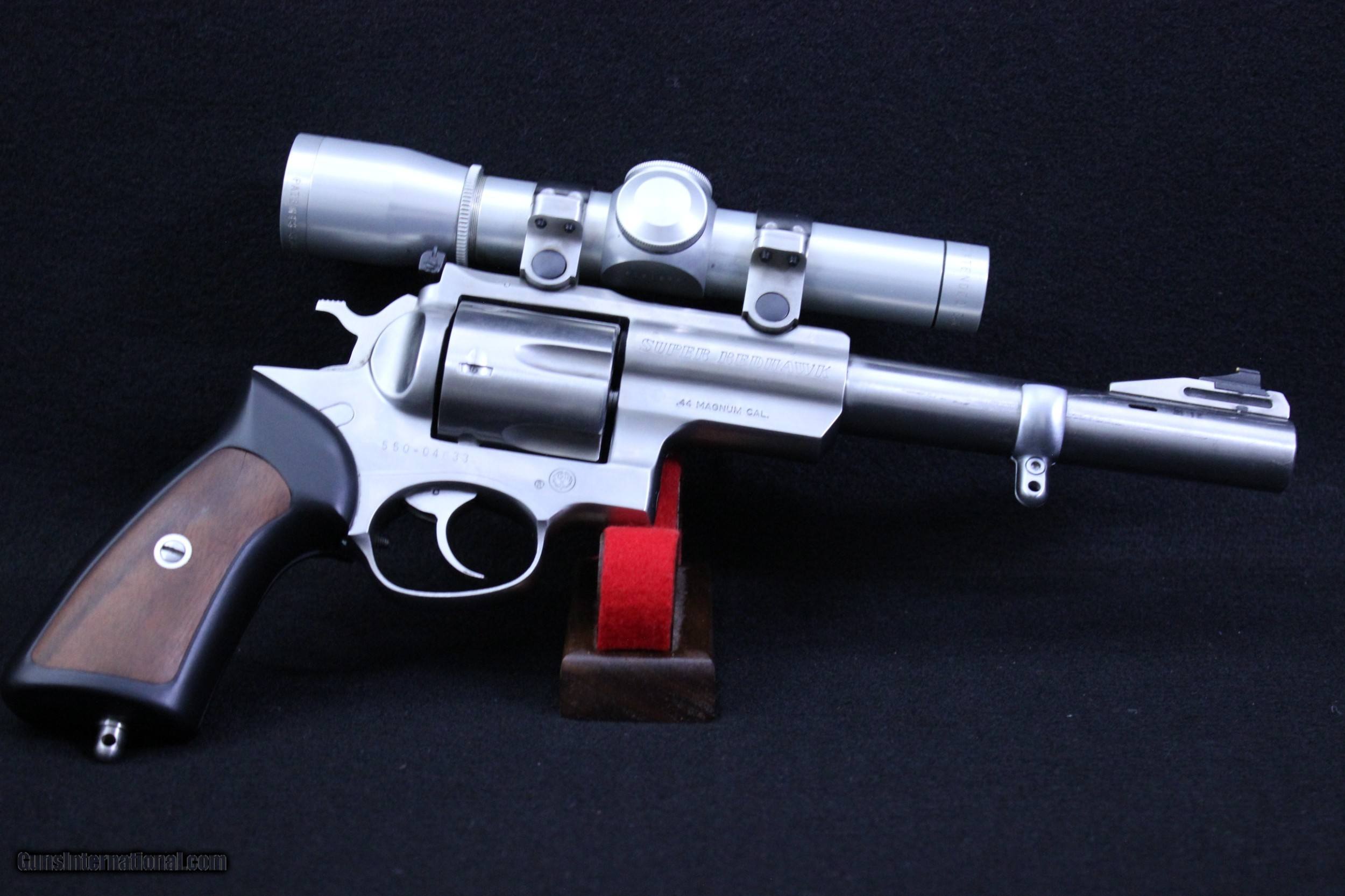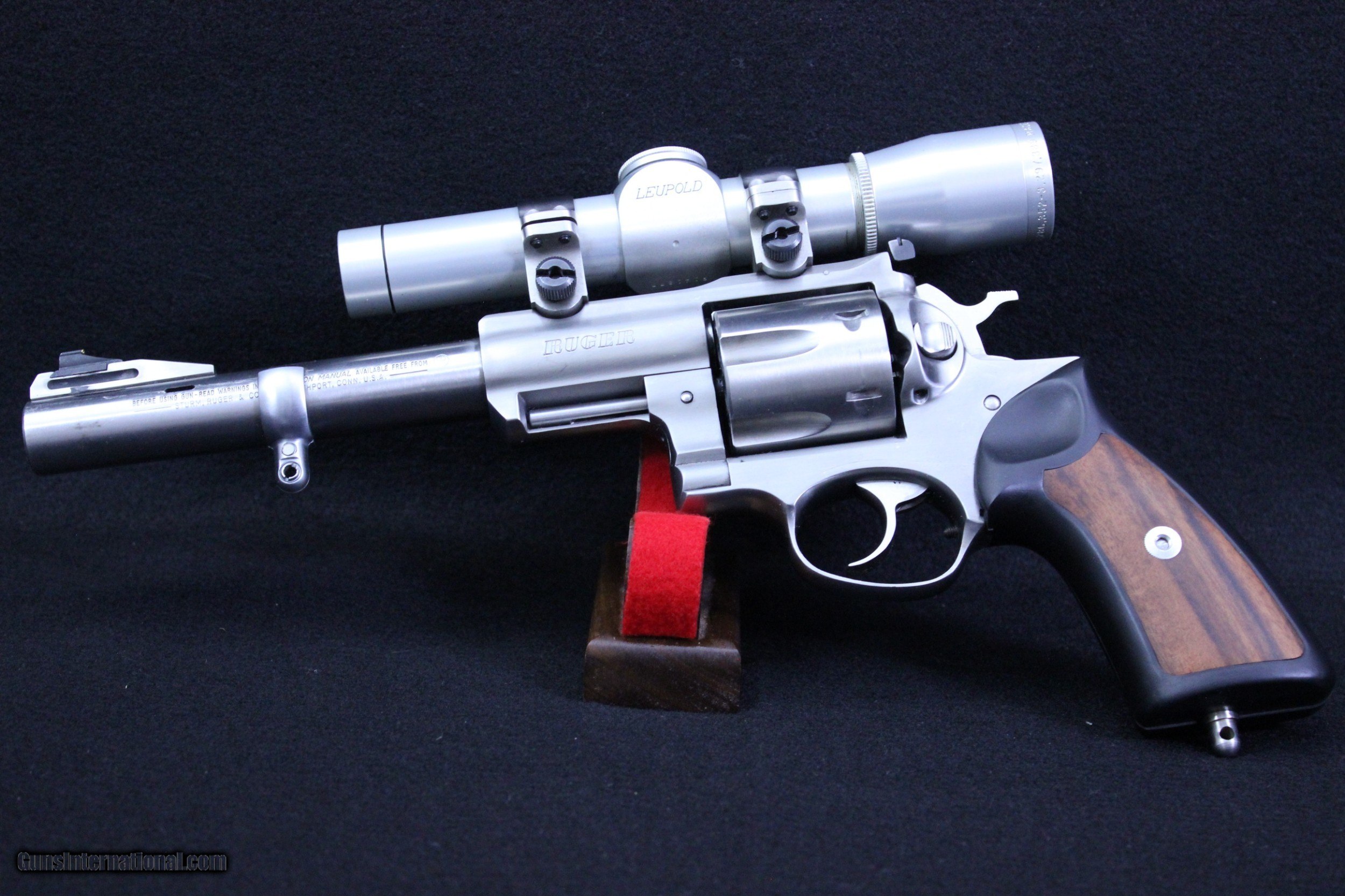 Description: This 7&3/8" Super Redhawk is ready to hunt. The Leupold M8 2 power scope turns this hand cannon into a deer or pig's worst nightmare! Call us today and add this to your arsenal or someone else will! SOLD |