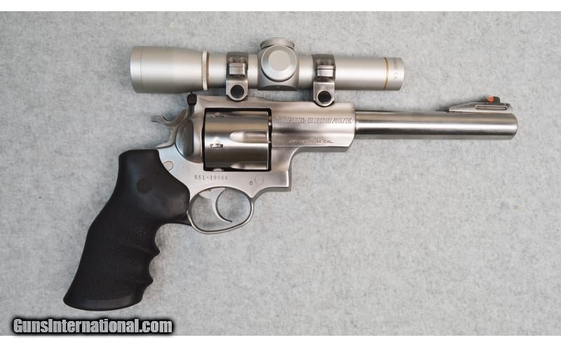 Description: This Ruger Redhawk is in great shape. It has a Leopold M8-x2 scope and is ready for a hunt. .44 Magnum SOLD Metal Condition: Excellent Bore Condition: Excellent Barrels: 7.5 inch Triggers: Single Weight: 4 lb Sights: Leupold M8-X2 Item Location: Avon, OH |