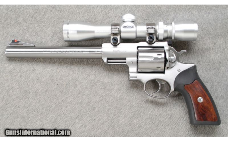 Description: SOLD Caliber Info: .44 Remington Magnum Metal Condition: Very Good Wood Condition: Very Good Bore Condition: Very Good Barrels: 9 1/2 Triggers: Double Action Stock: Rubber Grips w/Wood Inserts Weight: 4 lb. 10 oz. Sights: Simmons 2-6x32 Item Location: Dundee, MI |