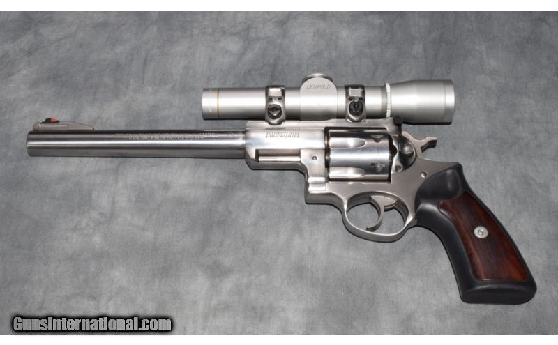 Description: Ideal Choice for Handgun hunting, or shooting bowling pins, the rugged stainless steel construction with no side plates is designed specifically to handle powerful magnum loads through extra metal in the top strap, sidewalls and barrel mounting areas. With an unique, single-spring mechanism allows for a smooth, light trigger pull. The triple-locking cylinder is locked into the frame at the front, rear and bottom for more positive alignment and dependable operation shot after shot. 44 Magnum models are dual chambered to also accept factory .44 Special cartridges. SOLD Caliber Info: 44 Remington Magnum Chambers: 6 round Cyclinder Metal Condition: Good - minor scrathes minor handling marks Bore Condition: Very Good - bright with deep rifiling Barrels: 9.5 inch Stainless Triggers: Single Action / Double Action Stock Dimensions: 13 inch Overall Sights: Factory Iron Sights, Leupold m8-2x extended Extras: Factory Box Item Location: Chesterfield, MI |