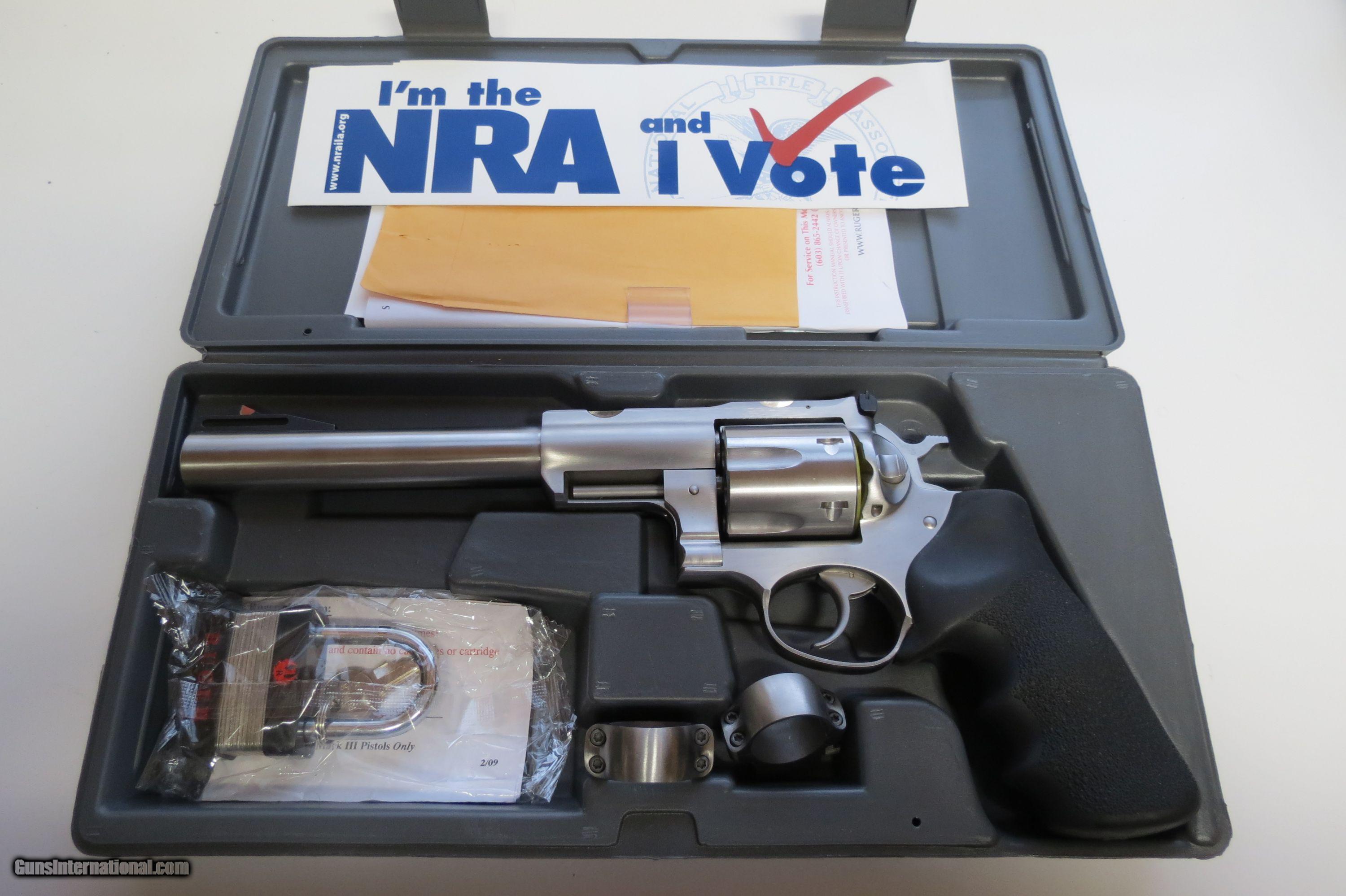 Description: Ruger Super Redhawk in 44 Magnum, Stainless steel construction, 7 1/2" barrel w/ rings, 6 shot fluted cylinder, white outlined adjustable rear sight, red ramp front sight, Hogue Tamer Monogrips, hard plastic case. Very little use. Shipping/Insurance $40 SOLD Manufacturer: Ruger Model: Super Redhawk Caliber Info: 44 Magnum Condition: Excellent |