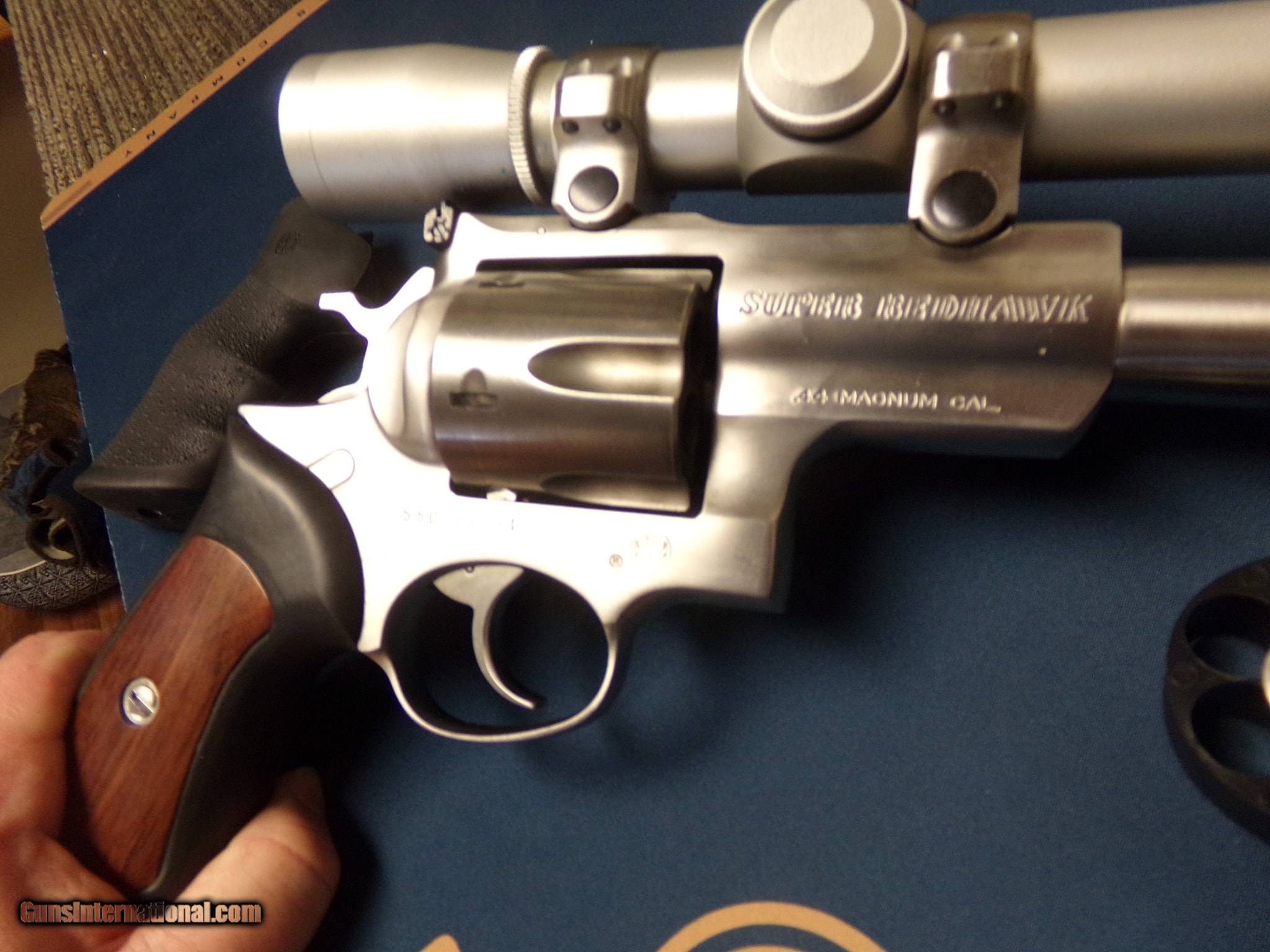 Description: Guns Listing ID: 826427 Ruger Super Redhawk 44 magnum revolver mfg in 1993....9.5\" barrel...includes Ruger rings and Leupold M8-2X pistol scope in silver....has factory grips and Hogue rubber grips...also two speedloaders...super nice set up! SOLD Manufacturer: RUGER Model: SUPER REDHAWK Caliber Info: 44 MAG Condition: Used - Non-Certified Barrels: 9.5 BARREL Finish: STAINLESS |