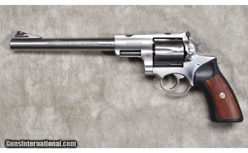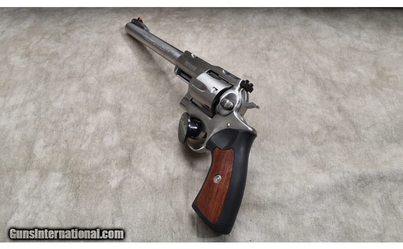 Description: All stainless steel revolver chambered in .44 Rem Mag featuring satin finish. It has a 9-1/2 inch barrel for hunting and target work. It has 'iron" sights installed and is scope ready with the Ruger integral base. .44 Magnum SOLD Chambers: 6 Metal Condition: Excellent. Wood Condition: Excellent. Bore Condition: Shiny and bright with good rifling. Barrels: 6 Triggers: Factory double and single action trigger. Butt Pad: Rubber grip with hardwood insert. Weight: 58 oz. Sights: Serrated ramp with red insert and adjustable notch. Item Location: Rogers |