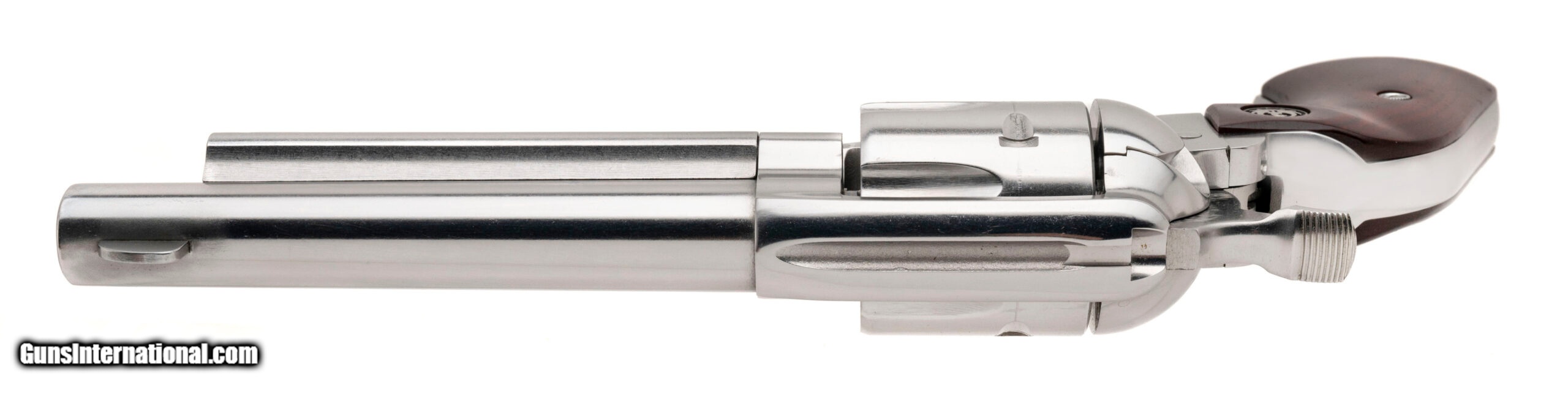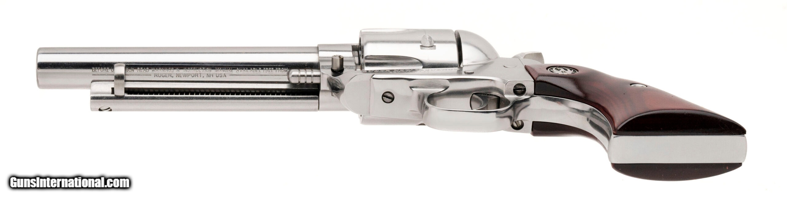 Description: "SN: 512-71035. Modern production. .357 magnum with a 5.5"" barrel. Bore is bright with strong rifling. High polish single action Ruger with a tuned action and upgraded hammer. Wood grips are in very good condition with minor handling wear. Overall very good condition. SOLD |