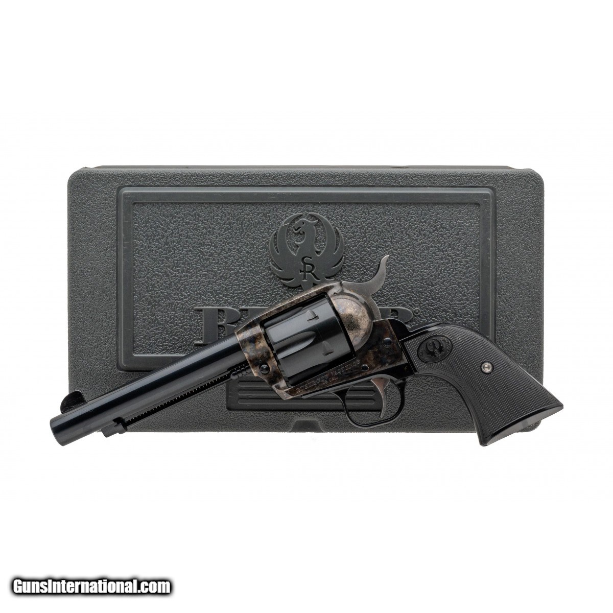 Description: " SN:510-16890. Modern production. .45 Colt with a 5.5"" barrel. Bore is in excellent condition. Single action revolver with case color receiver and hard rubber grips. Overall condition is excellent. Comes with box. Consignment. SOLD |