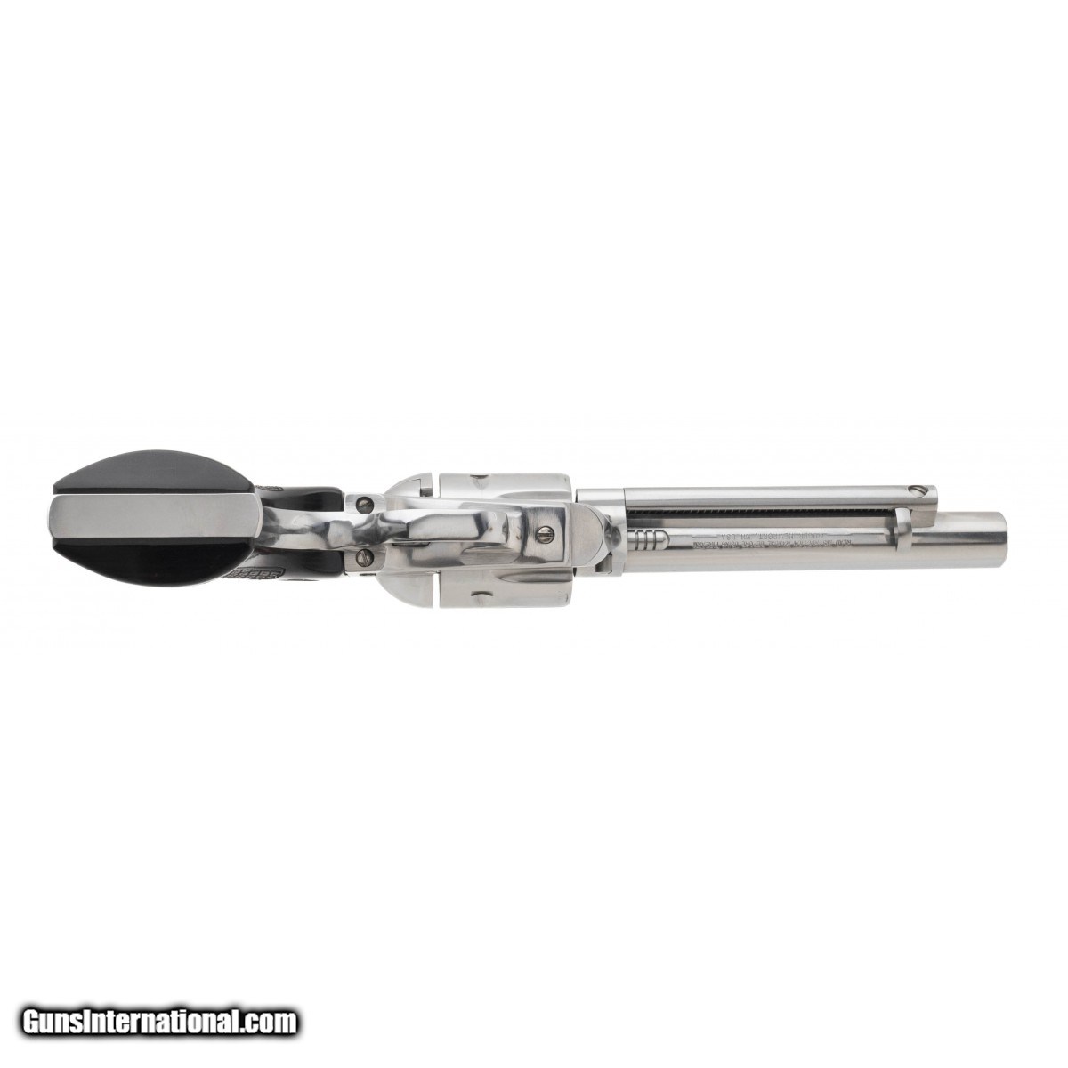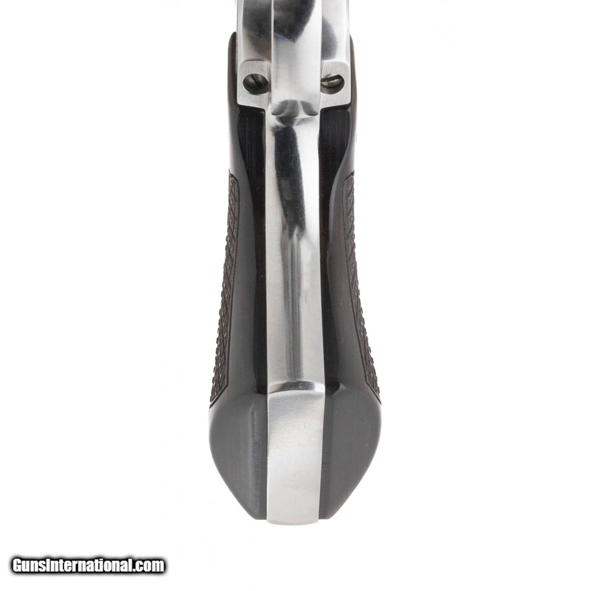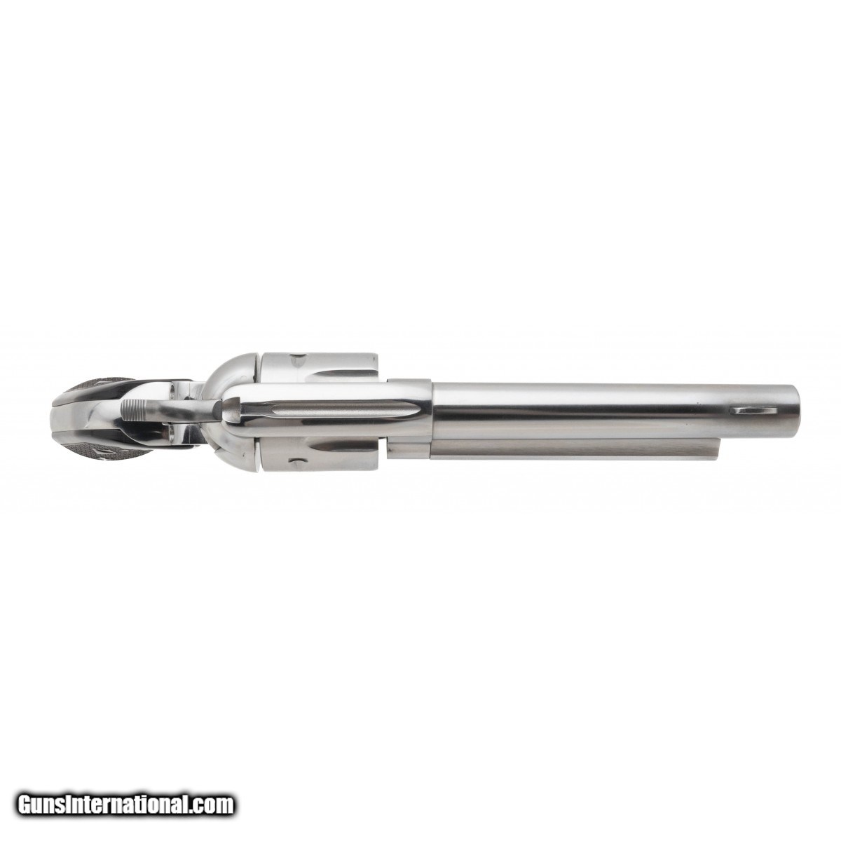 Description: " SN: 513-25326. Modern production, .357 magnum with a 5.5"" barrel. Stainless single action magnum revolver with 6rd cylinder and Ruger checkered rosewood grips. Overall excellent condition. Comes with box and original grips. SOLD |