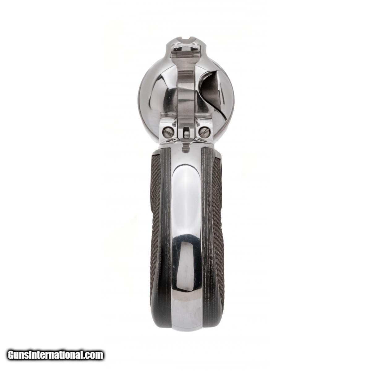 SN: 59-00993. Modern production. .44 Magnum with a 4"" barrel, bore is excellent. Single action revolver with high gloss stainless finish, blade front sight and checkered laminated wood grips. Overall excellent condition. Comes with box. (Consignment)