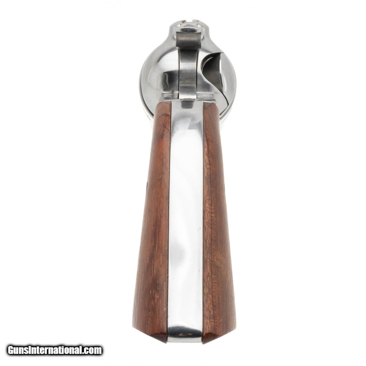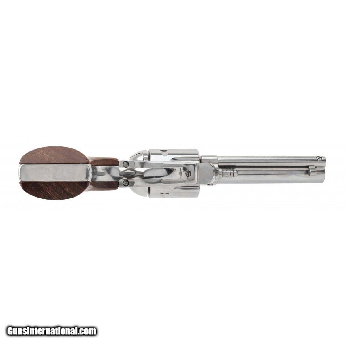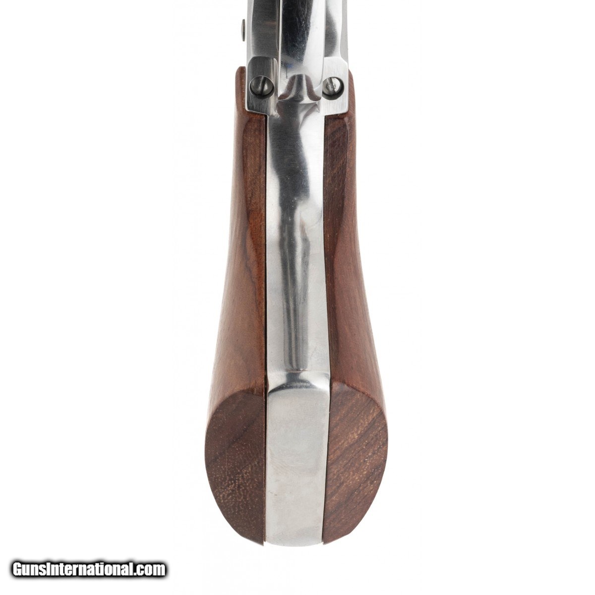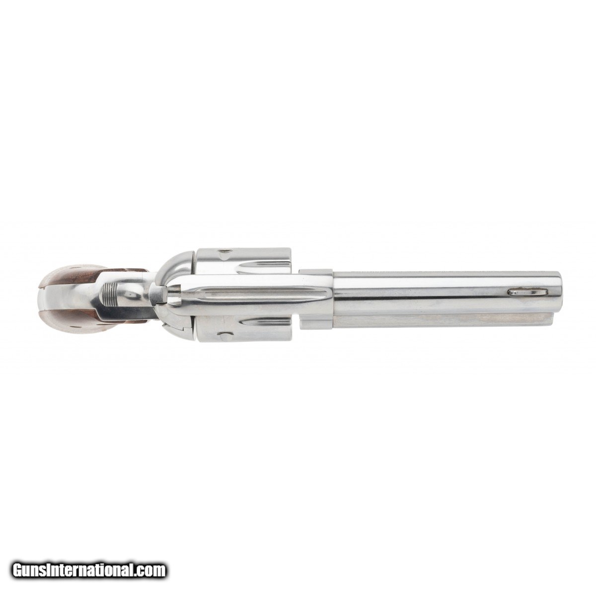 Description: " SN: 57-69788. Made in 2000. .45 Colt with a 4.5"" barrel. Bore is in very good condition. Ruger single action stainless revolver. Metal is in very good condition with light handling wear. Wood grips are in very good condition with light handling wear. Overall condition is very good. Comes with case. SOLD |