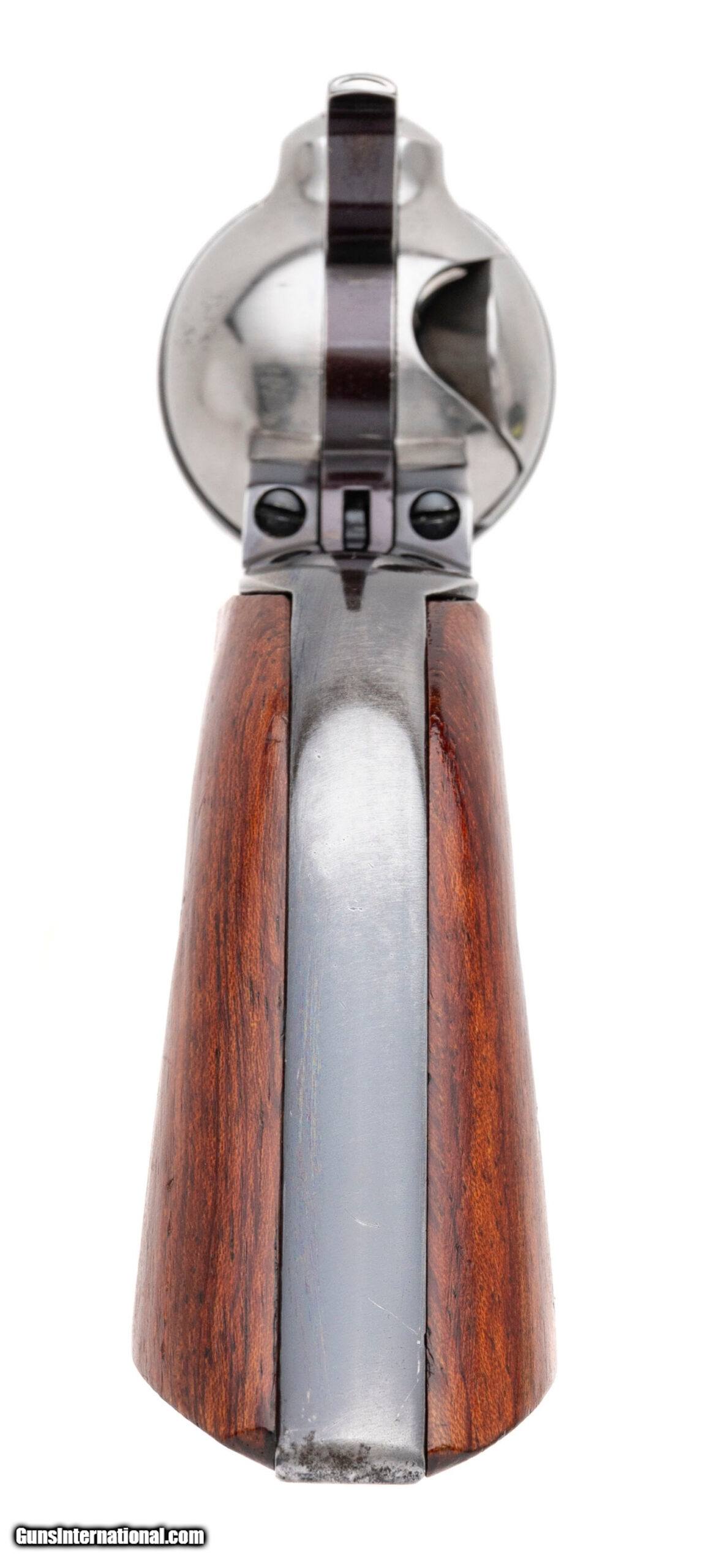 Description: "SN: 56-39200. Made in 1997, .357 MAG. with a 5.5"" barrel. Bore is excellent. Single-action only steel frame revolver with a bladed front sight, 6rd cylinder, blue finished barrel, and medallion wood grips. Finish shows moderate wear and minor marks. Overall condition is very good. Includes original case. Price: $699.95 Contact Seller |