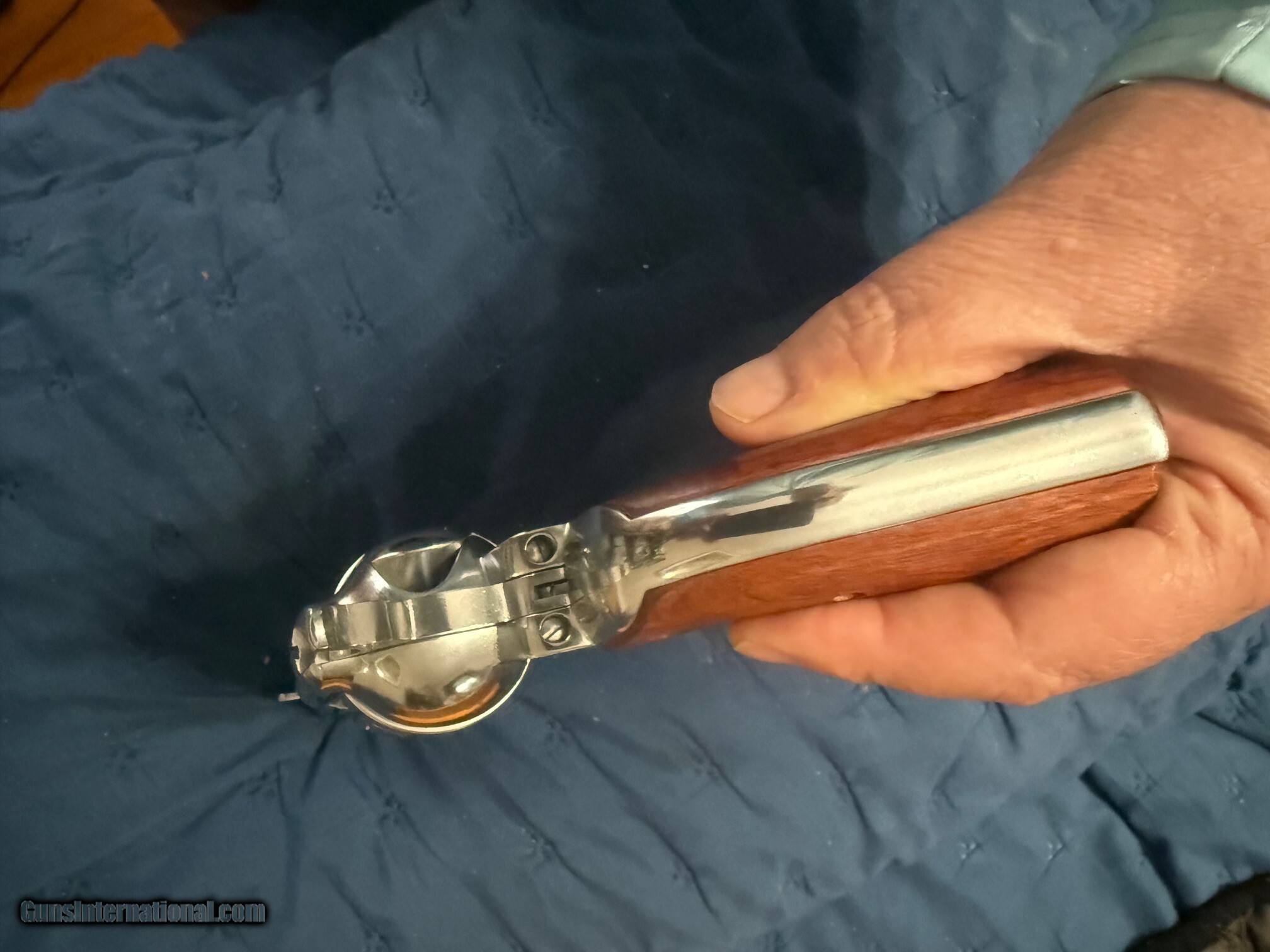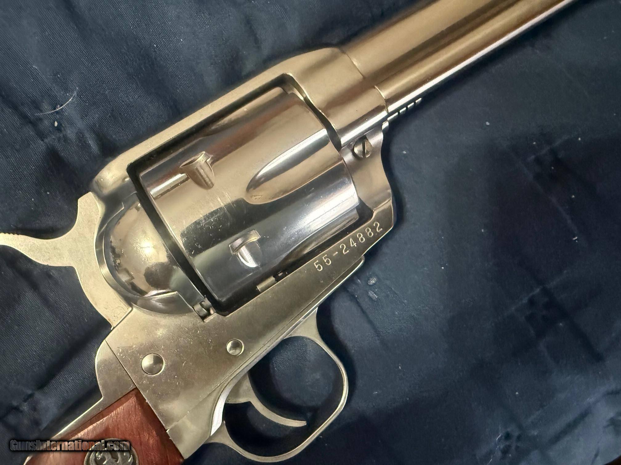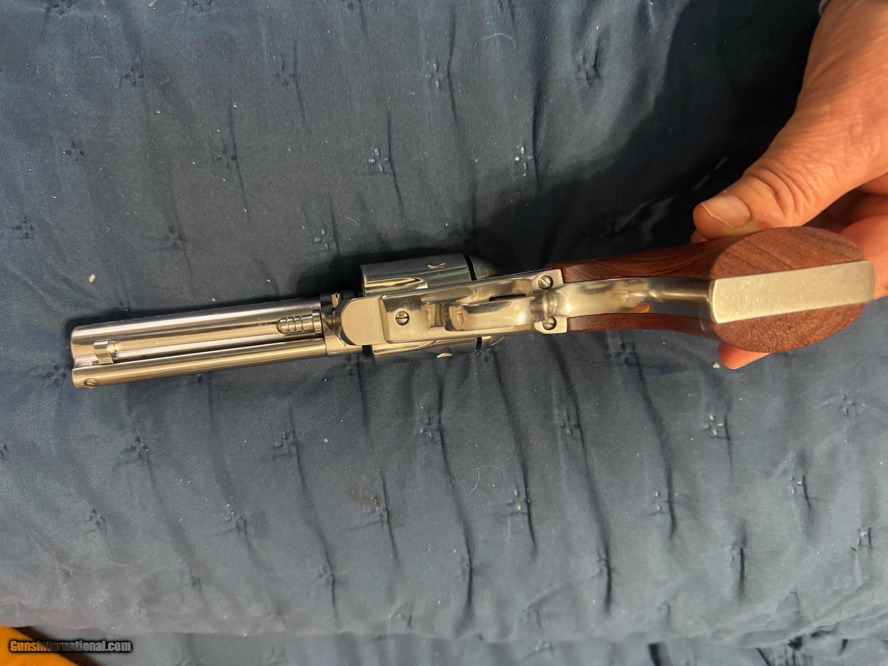 Description: Product Description This traditional Western-style revolver features a comfortable, natural-pointing grip and a cold-hammer-forged barrel for exceptional accuracy. It features a patented reverse indexing pawl for easier loading, a beveled cylinder for smooth holstering, and a transfer bar mechanism for safety. Classic sights and a crescent-shaped ejector rod complete its cowboy appeal. Firearm Features