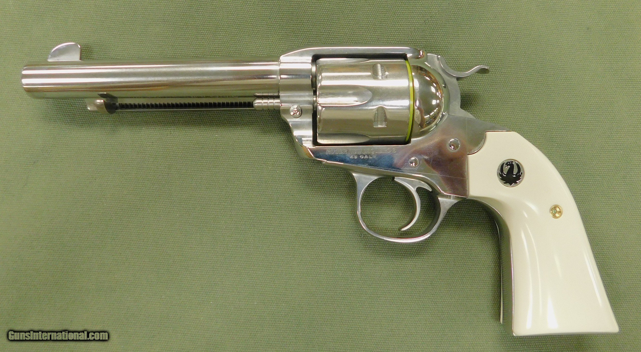 Description: New in the box, bisley/vaquero, stainless, 45 colt,5 1/2 inch barrel. SOLD |
