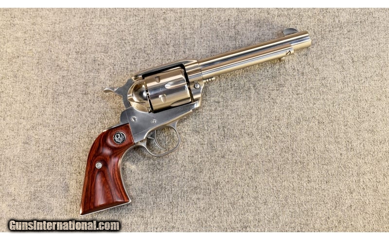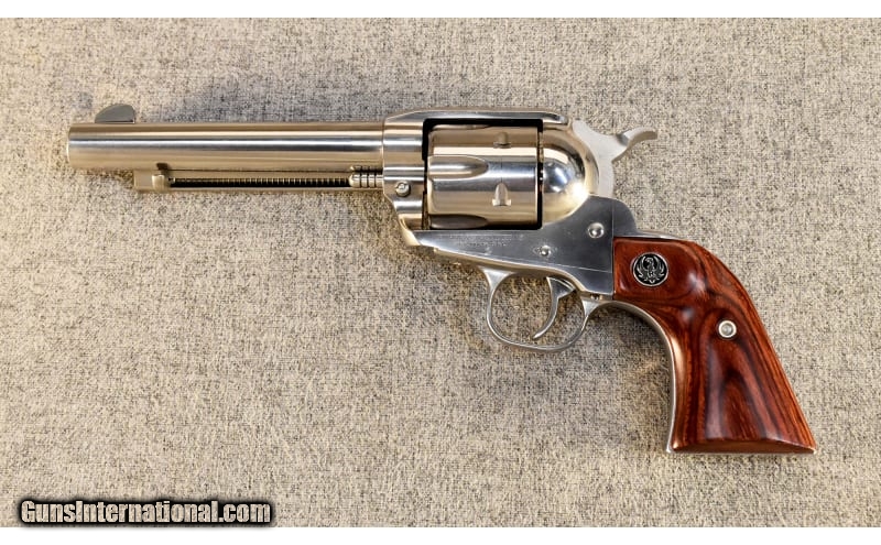 Description: This is a pre-owned stainless Ruger New Model Vaquero in .357 Magnum .357 Magnum SOLD Metal Condition: Very good with light cylinder drag marks and a few small scratches and rub marks Wood Condition: Very good with a few small scratches Bore Condition: Clean with bright lands Barrels: 5.5 Triggers: SA Butt Pad: Smooth laminated hardwood Weight: 2 Lbs. 12 Oz, Sights: "Blade front, integral U-notch rear Item Location: Glendale, AZ |