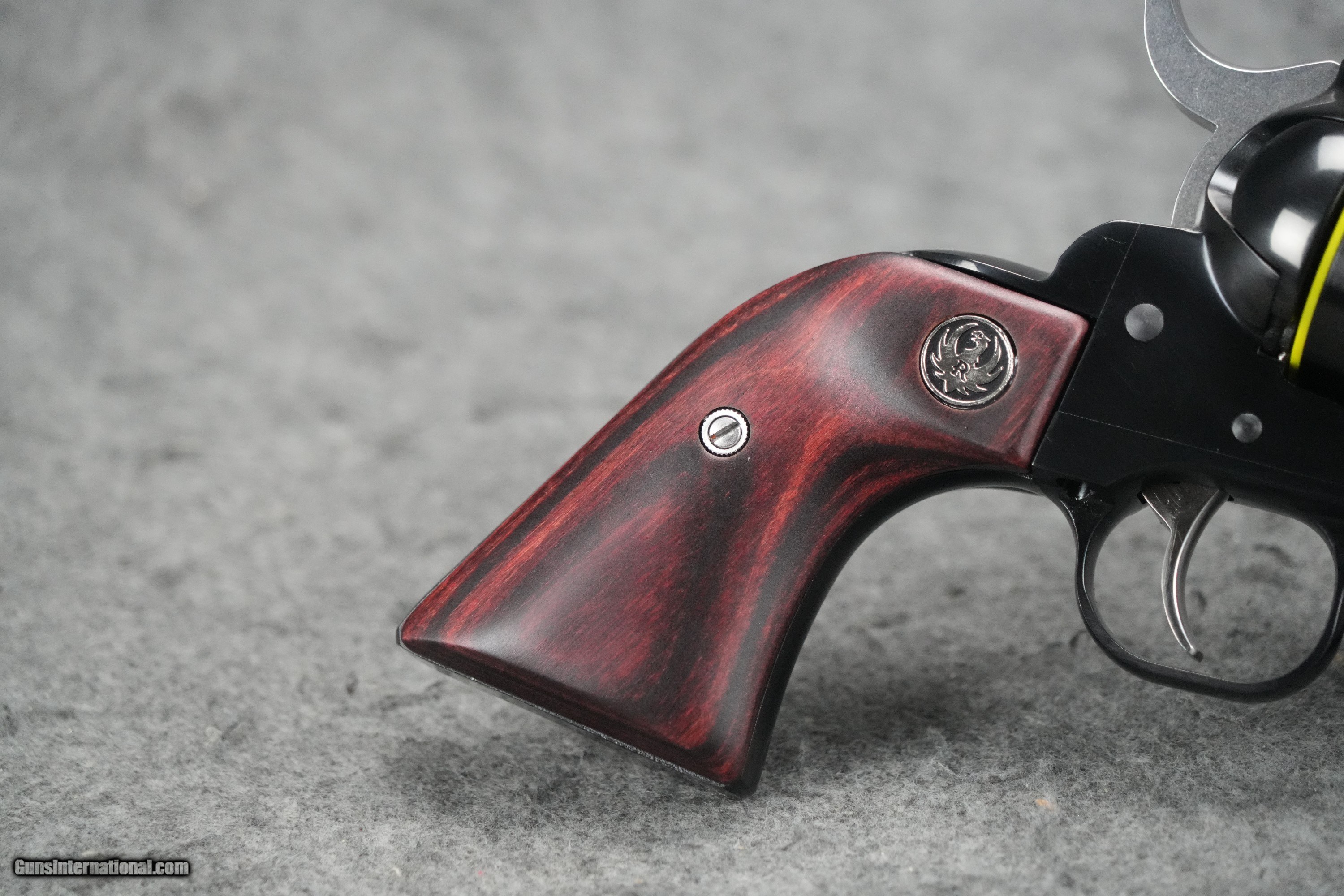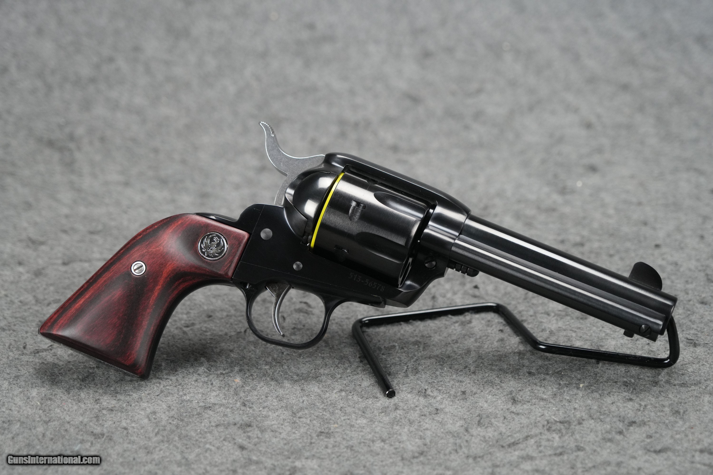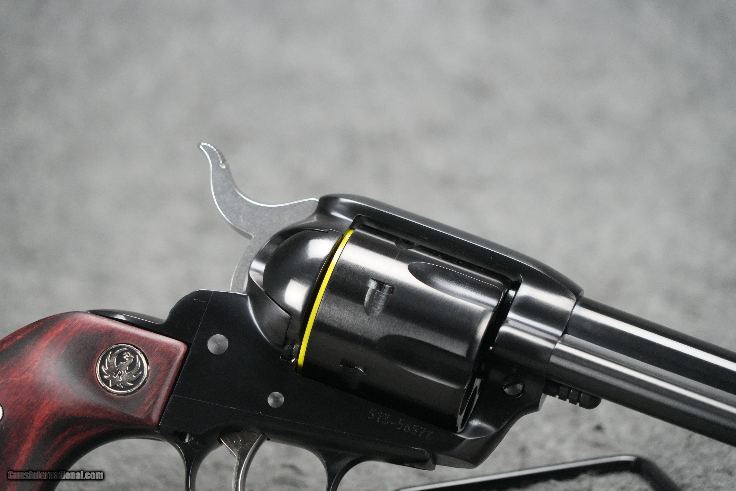 Description: Traditional western-style, hand-filling grip has long been acknowledged as one of the most comfortable and natural-pointing of any grip style. Patented reverse indexing pawl allows for easier loading and unloading, while the traditional beveled cylinder simplifies holstering. Transfer bar mechanism and loading gate interlock provide an unparalleled measure of security against accidental discharge. Handsome, larger crescent-shaped ejector rod head boasts traditional form, perfect for every cowboy or cowgirl. Cold hammer-forged barrel results in ultra-precise rifling that provides exceptional accuracy and longevity. Blade front and integral notch rear sights. Grips Hardwood Front Sight Blade Barrel Length 4.62" Material Alloy Steel Capacity 6 Rear Sight Integral Twist 1:16" RH Finish Blued Overall Length 10.25" Weight 40 oz. Grooves 6 SOLD Handgun Caliber: .45 Colt Manufacturer: Ruger Model: New Vaquero Barrel Length: 4.62" Barrel Condition: BRAND NEW |