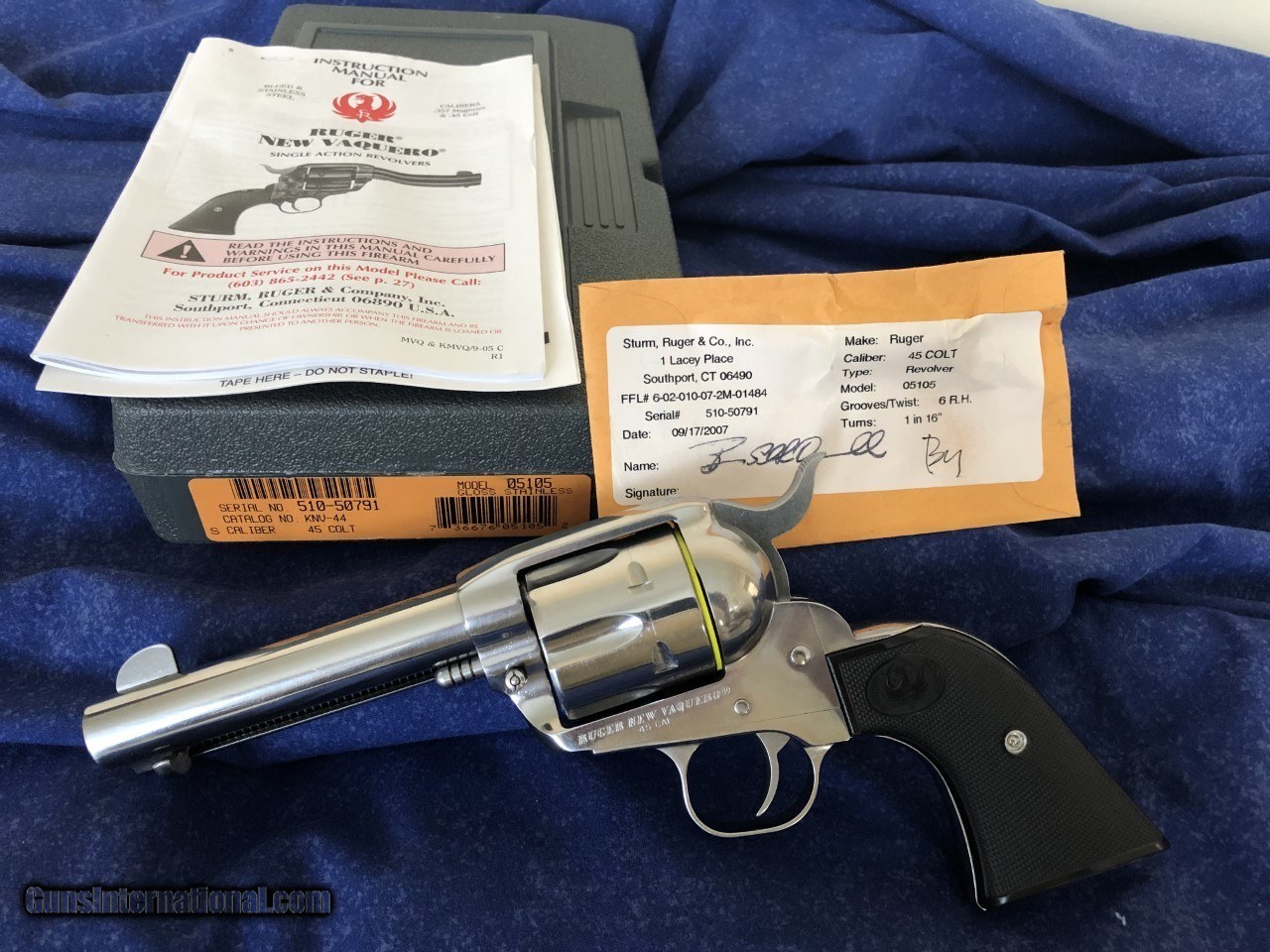 Description: UPDATE -> Money is coming for this gun. Being sent 8/16/2021. I expect the deal to go through. Please email me now if you want to be back up. Thank You, Dale $750 - I pay for shipping in the 48 continental U.S. up to $50. This Ruger New Vaquero High Gloss Stainless 45 Colt is absolutely perfect. Comes with original box, test shell, instruction manual. Stocks are in perfect condition. I will take: (1) personal check, will wait for it to clear I use mobile deposit so should only take 4-5 days, (2) cashier check, or (3) money order. No Zelle, Paypal, etc. RUGER QUALITY -- BEAUTIFUL GUN!! PERFECT CONDITION Please call me if you have any questions Dale (703) 795-8837. I can text you more photos, or facetime. I aim to price competatively, and want my guns sold in a reasonably short time. So PLEASE CONSIDER "WATCHING" MY ITEMS. If this is the gun for you I will ask you to send me an email with your Name, Address, Phone number, and pdf of the copy of the Federal Firearm Licensed dealer license where you want the gun shipped to. (Or you could put copy of the FFL license in the envelope with your payment.) Shipping will be done using a FFL dealer in Delaware where I live. Shipping will be to the address on the FFL license via Fedex. I will email you the tracking number. I pay for shipping in the continental 48 U.S. up to $50. Please see my other postings. SOLD Handgun Caliber: .45 Colt Manufacturer: Ruger Model: New Vaquero Serial Number: 510-50791 Chambers: 6 Condition: Excellent Metal Condition: Excellent Finish: High Gloss Stainless Manufacture Date: 09/17/2007 Case: Original Plastic Case,Test Shell, Manual |
