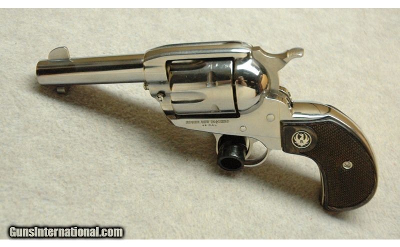 Description: Ruger New Model Vaquero Revolver, .45 Colt. Excellent condition with hard case. A good choice for Ruger collectors or Cowboy Action Shooters. .45 Colt SOLD Chambers: Revolver Metal Condition: Excellent Wood Condition: Grips are excellent Bore Condition: Bright Barrels: 3 3/4 Triggers: Single action Butt Pad: Factory grips Sights: Fixed rear channel, blade front sights Item Location: La Vista, NE |