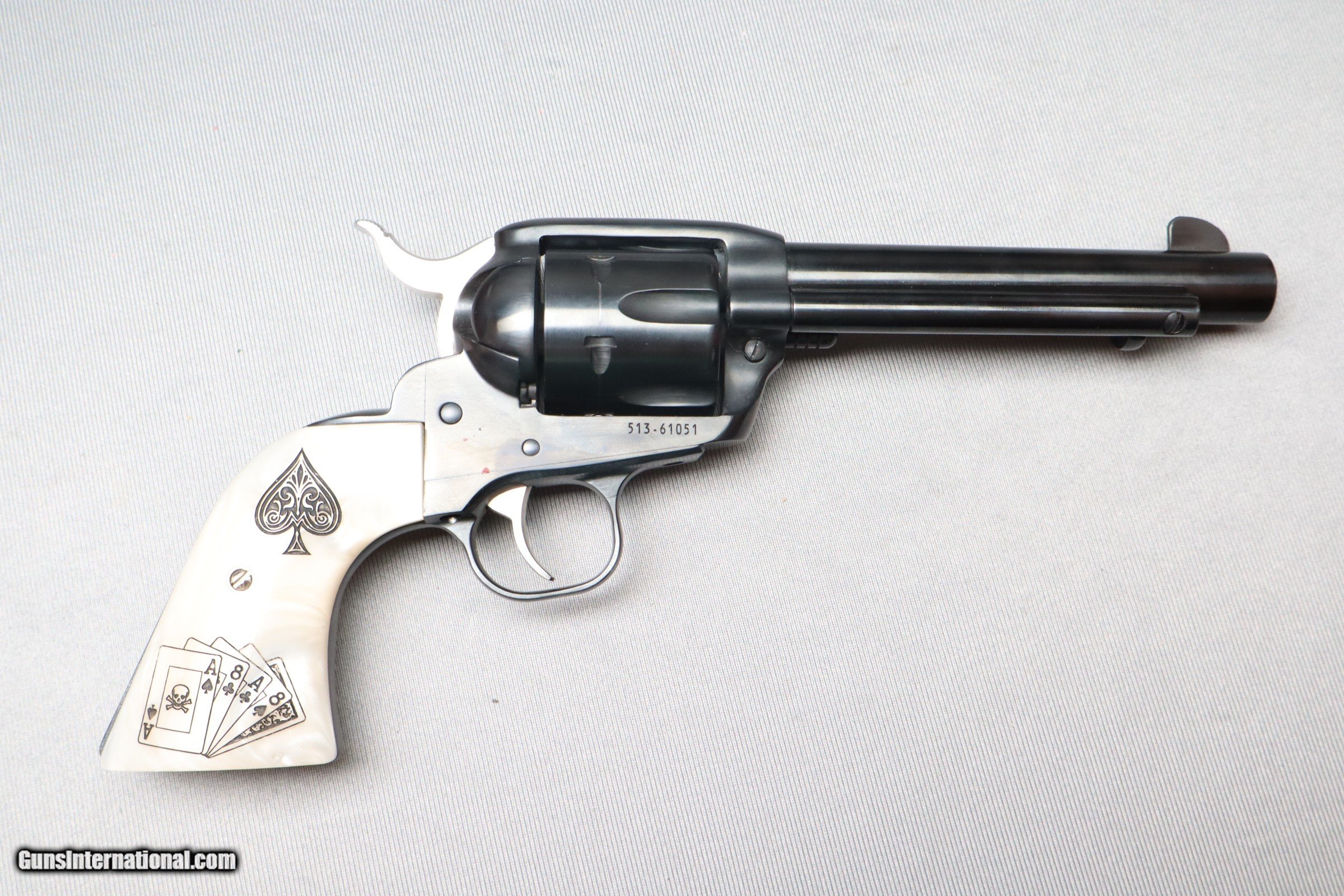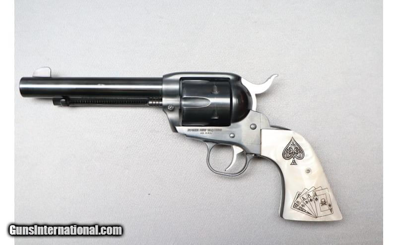 Description: This Ruger Vaquero is a right handed, single action, gate loaded, six shot revolver chambered in .45 Colt. It has scratches on the right side of the barrel. .45 Colt Chambers: 6 Chambers .45 Colt Metal Condition: Good Bore Condition: Good Barrels: 5.5 Triggers: Single Action Weight: 2.55 lbs Sights: Iron Sights Item Location: Missoula, MT Price: $859.99 Contact Seller |