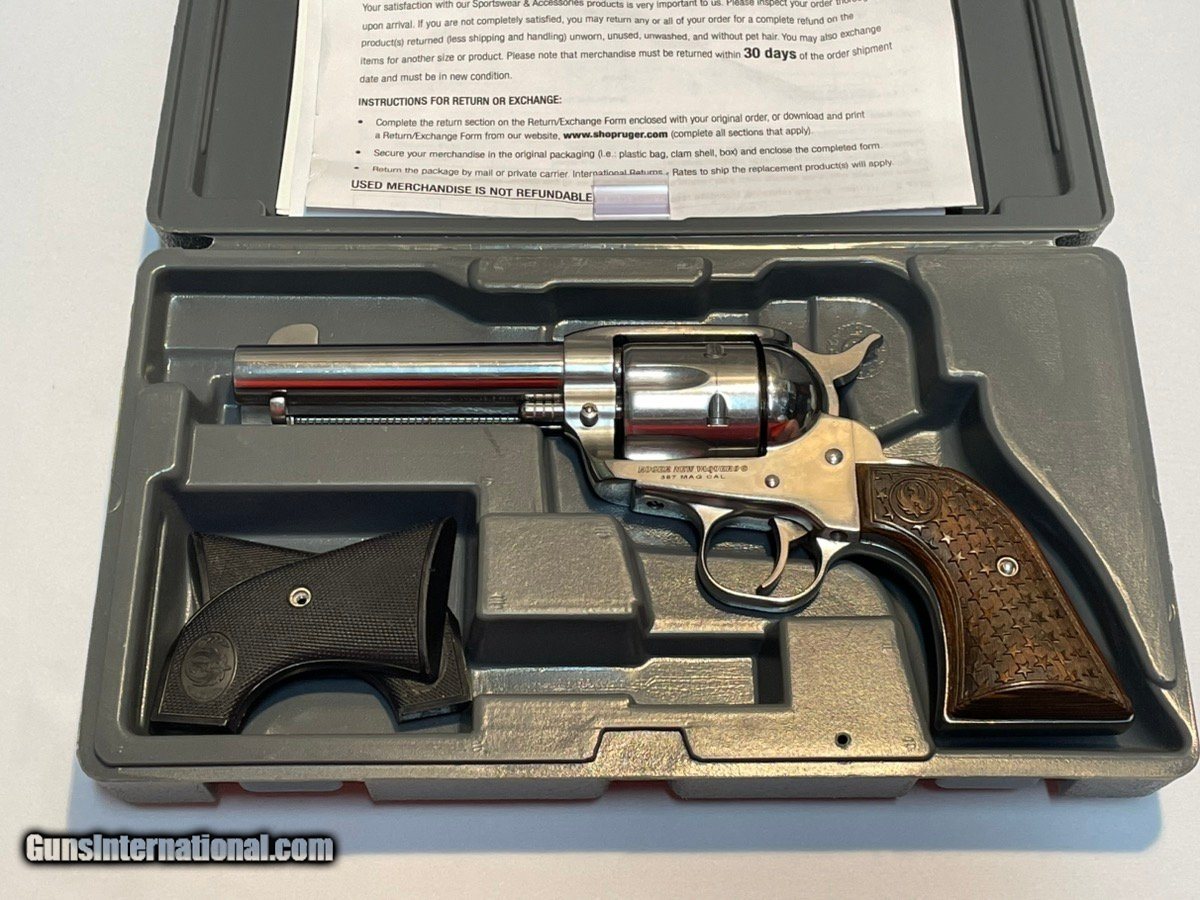 Description: Guns Listing ID: 502057 FCS109309 Excellent Condition TALO Distributor Exclusive Additional Polymer Grips Included OEM Case Included SOLD Manufacturer: RUGER Model: VAQUERO Caliber Info: .357 MAG Condition: Used - Non-Certified Barrels: 4.5 Action: REVOLVER Finish: polished stainless |