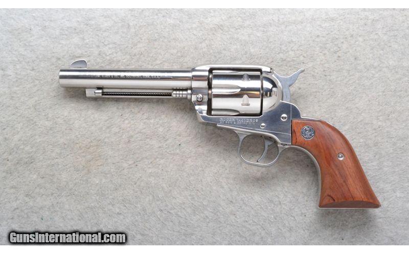 Description: This Ruger Model Vaquero is a 6 shot stainless steel single action revolver in .40 S&W & .38-40 Win. Cal. It has a 5.5 inch barrel. A blade front sight and an integral notch rear sight. The grip is a smooth walnut with the Ruger eagle medallions. .40 S&W SOLD Chambers: 6 shot. Metal Condition: Excellent. Wood Condition: Excellent. Bore Condition: Excellent. Barrels: 5.5 inch. Triggers: Single Action. Weight: 46 oz. Sights: Blade front. Integral notch rear. Item Location: Richfield, WI |