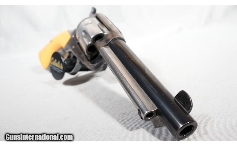 Description: The Ruger Vaquero is a classic single-action revolver modeled after the iconic Colt Single Action Army and built with modern engineering for reliability and safety. Chambered in .44-40 Winchester (WCF), it's a versatile cartridge historically famous for its use in both rifles and handguns in the Old West. This particular Vaquero has a blue 5 ½" barrel attached to a color case-hardened frame. The 6-round fluted cylinder is stainless steel, as are the grip frame and trigger guard. The grip panels are made of light-colored wood—probably maple—with a nice-looking grain and blonde gloss finish. It features Ruger's famous transfer bar safety system which allows safe carry with all six chambers loaded. This gun is in good shape overall. There is some finish wear and a few small nicks around the muzzle, but no damage to the bore. There is a very little bit of holster wear at the muzzle. The action is smooth, and the lockup is tight. The bore is clean and bright. It includes a soft zipper case, but no factory box or user manual. .44-40 Winchester SOLD Chambers: .44-40 Winchester Metal Condition: Very good Wood Condition: Excellent Bore Condition: Excellent Barrels: 5 1/2 Triggers: Single-action only Butt Pad: Gloss blonde maple grips Weight: 2 lbs 12 oz Item Location: Kearney, NE |