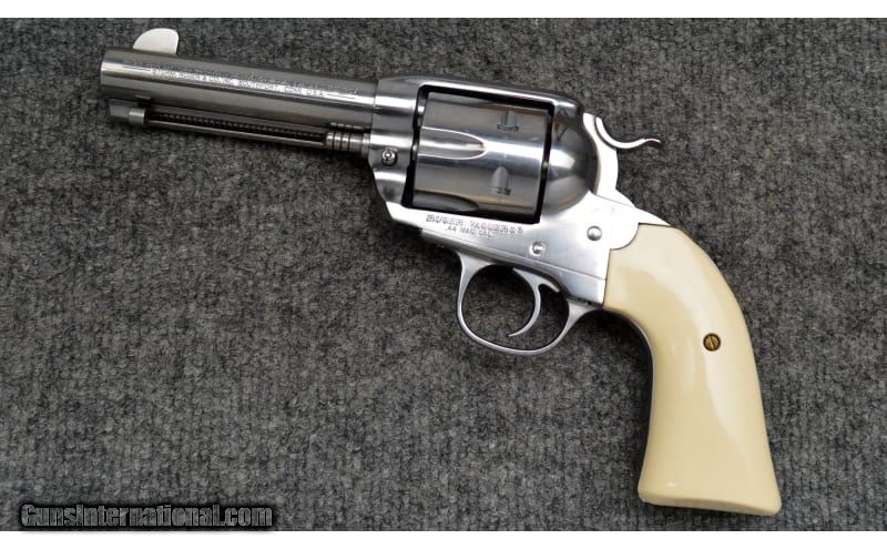 Description: For your consideration, a Ruger Vaquero chambered in .44 Magnum. With its steeper grip angle and low-slung hammer, this is an example of the Bisley model based on the Colt Bisley named for the famed Bisley shooting grounds in England. While styled after the classic Colt SAA, it features the mechanical improvements of a coil mainspring and altered lockwork permitting loading and unloading with the hammer fully lowered. This piece dates to 2003. .44 Magnum SOLD Chambers: 6 Metal Condition: Excellent Wood Condition: Excellent Bore Condition: Excellent Barrels: 4.75 Triggers: Smooth Face Weight: 2.5 lbs Sights: Iron Sights Item Location: Hamburg, PA |