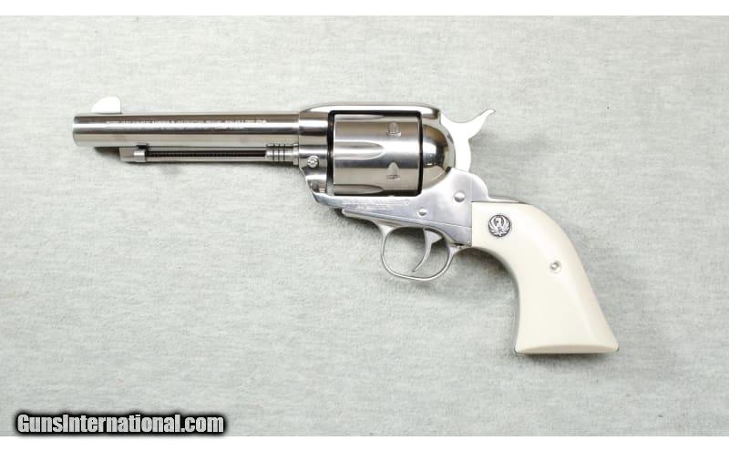Description: Ruger Vaquero in .44 Remington Magnum. This 6-shot single action revolver has a 5 1/2-inch barrel. This revolver has traditional western-style with a hand-filling grip that has long been acknowledged as one of the most comfortable and natural-pointing of any grip style. The frame and barrel have a stainless finish. It has a fluted cylinder. The grips are white simulated ivory grips. Bore is bright. The revolver has fixed sights. It also has a transfer bar safety. No box. .44 Magnum SOLD Metal Condition: Excellent Bore Condition: Bright Barrels: 5 1/2 Inches Triggers: Factory Weight: 2 lbs 10 oz Sights: Fixed sights Item Location: La Vista, NE |