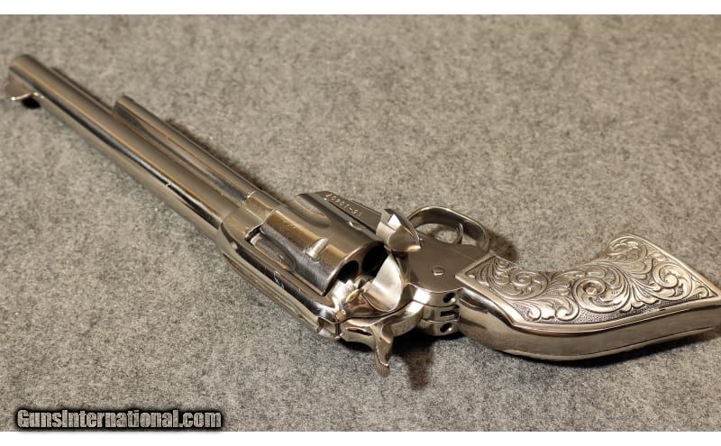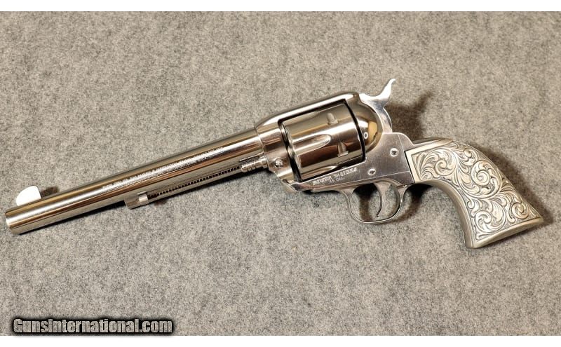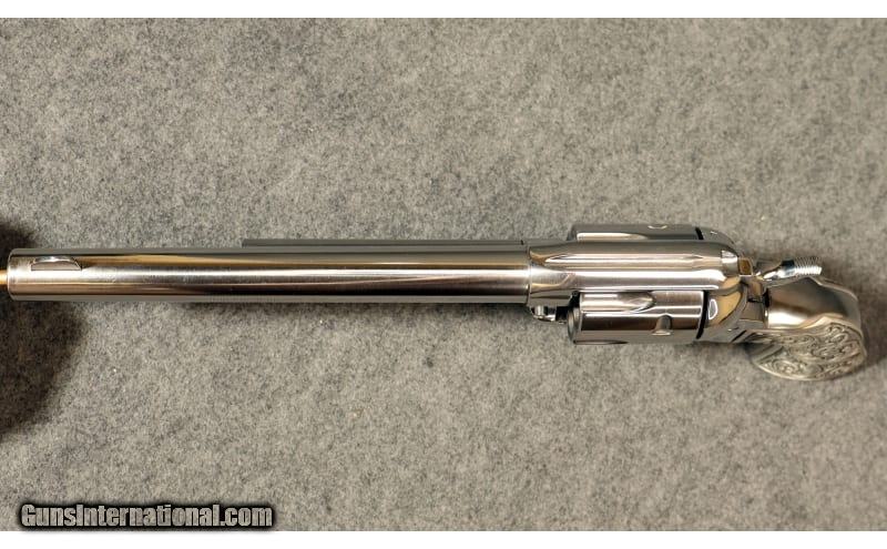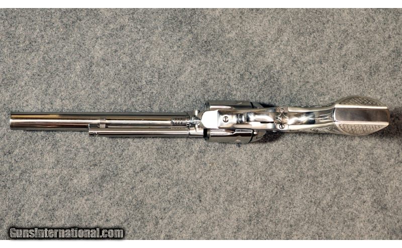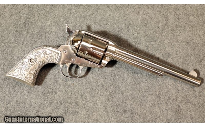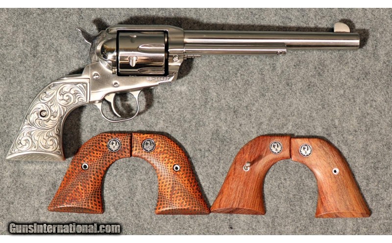 Description: For your consideration is a Ruger Vaquero .45 Colt single action revolver. This handgun is in very good condition with minimal signs of wear and a nice clean shine to the finish. It comes with metal decorative grips and two sets of Ruger wood grips. .45 Colt SOLD Metal Condition: Good condition Wood Condition: Good condition Bore Condition: Good condition Barrels: 7.5" Barrel Triggers: Curved single action only trigger Stock Dimensions: OAL 13.5 Weight: 2 lb 12 oz Sights: Low profile rear notch and front blade sights Item Location: Wichita, KS |