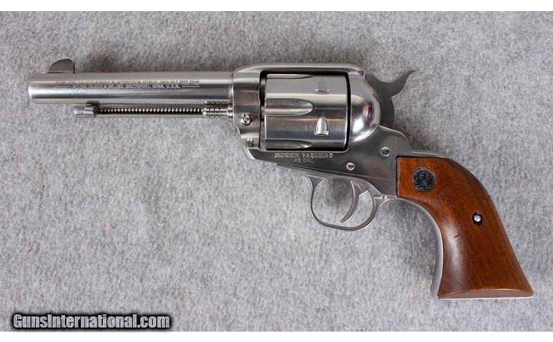Description: This is the Ruger Vaquero .45 LC SA revolver in stainless steel. .45 Long Colt SOLD Metal Condition: Very Good Wood Condition: Very Good Bore Condition: Very Good Barrels: 5.5 Triggers: SA Butt Pad: Ruger factory wood grips. Weight: 48 OZ Sights: Integral rear with front blade. Item Location: East Hartford, CT |