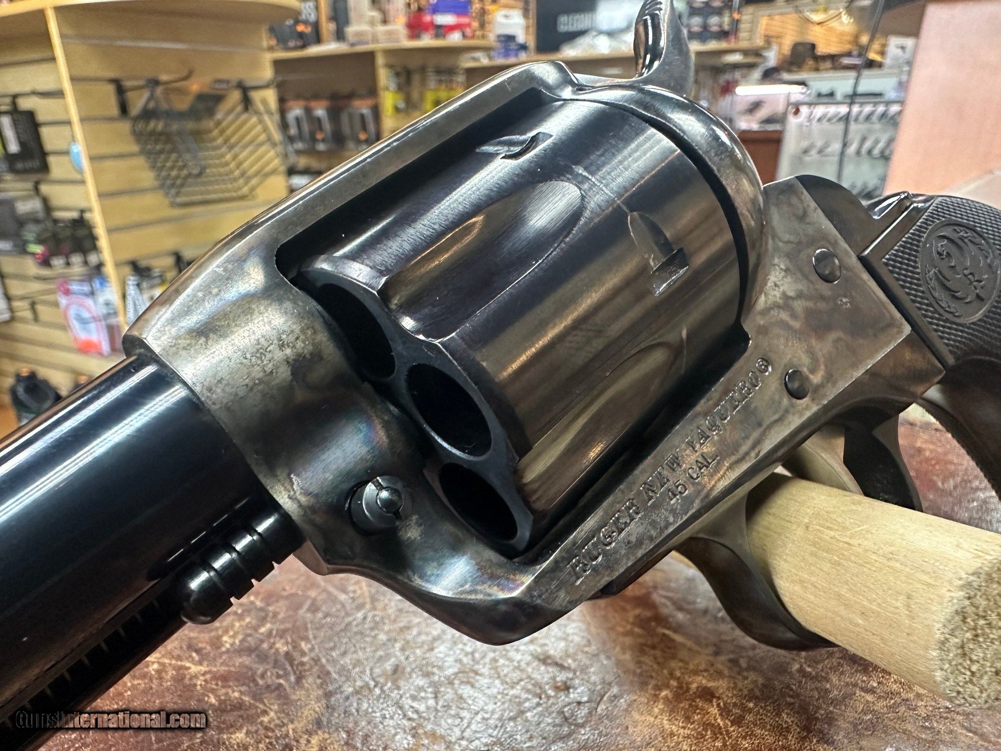 Description: Guns Listing ID: 545848 Up for purchase is an excellent condition Ruger Vaquero single action revolver. This revolver has a 5.5\" barrel chambered in .45LC. This gun is in excellent condition, with a smooth action, a clean bore and strong barrel rifling. This gun comes does not come with the box or any accessories. The pictures show more detail on overall condition. If you have any questions, please ask prior to . We will do the best we can to answer your questions. We do not have history, round count, or service records for this firearm! We do not disassemble, clean, or test fire trade-in or used firearms. We inspect for obvious broken parts, barrel obstructions, and perform a quick table-top function check prior to posting any item for sale. SOLD Manufacturer: RUGER Model: Vaquero Caliber Info: .45 LC Condition: Used - Non-Certified Barrels: 5.5 BARREL Action: REVOLVER Finish: color case |
