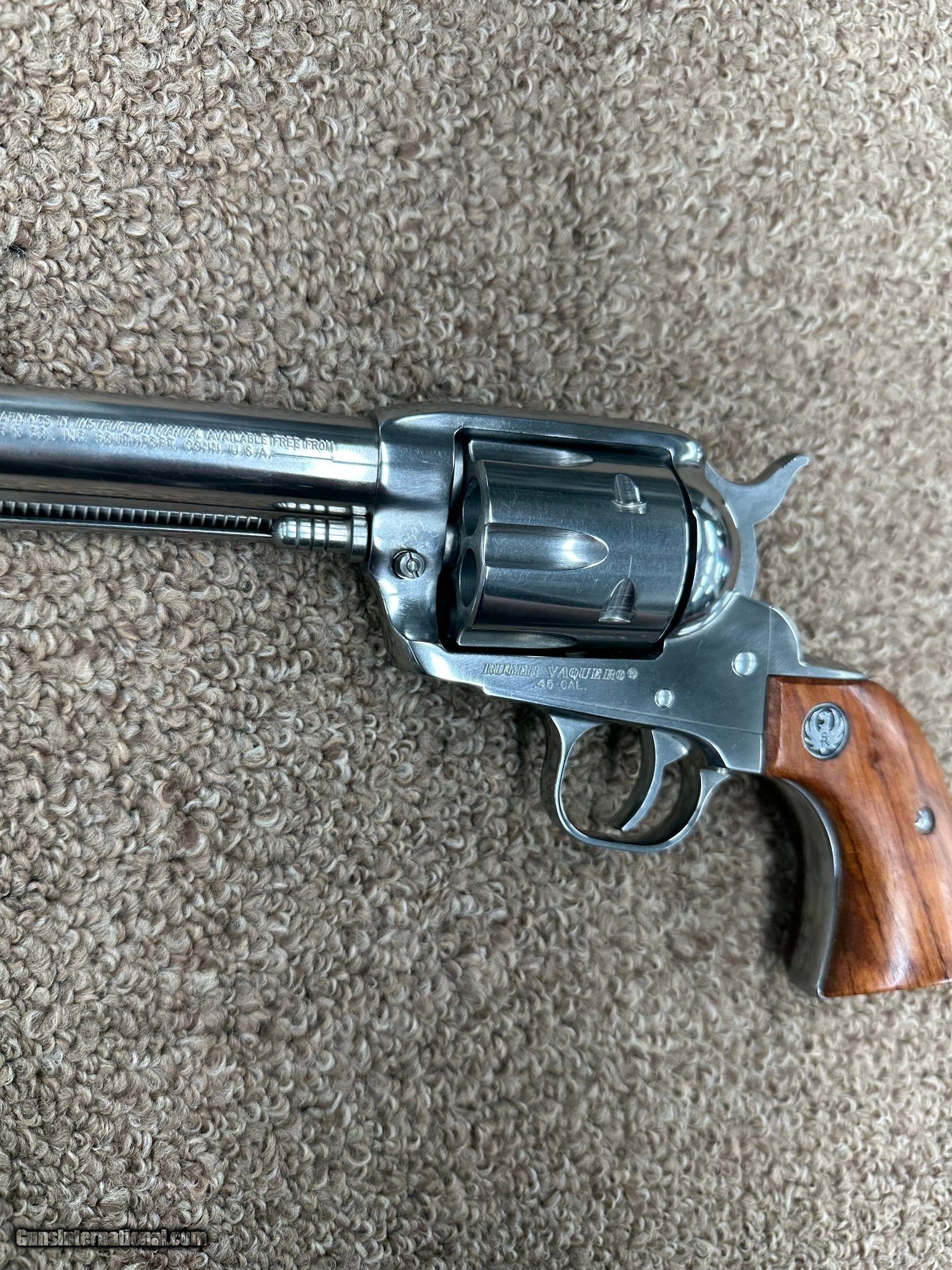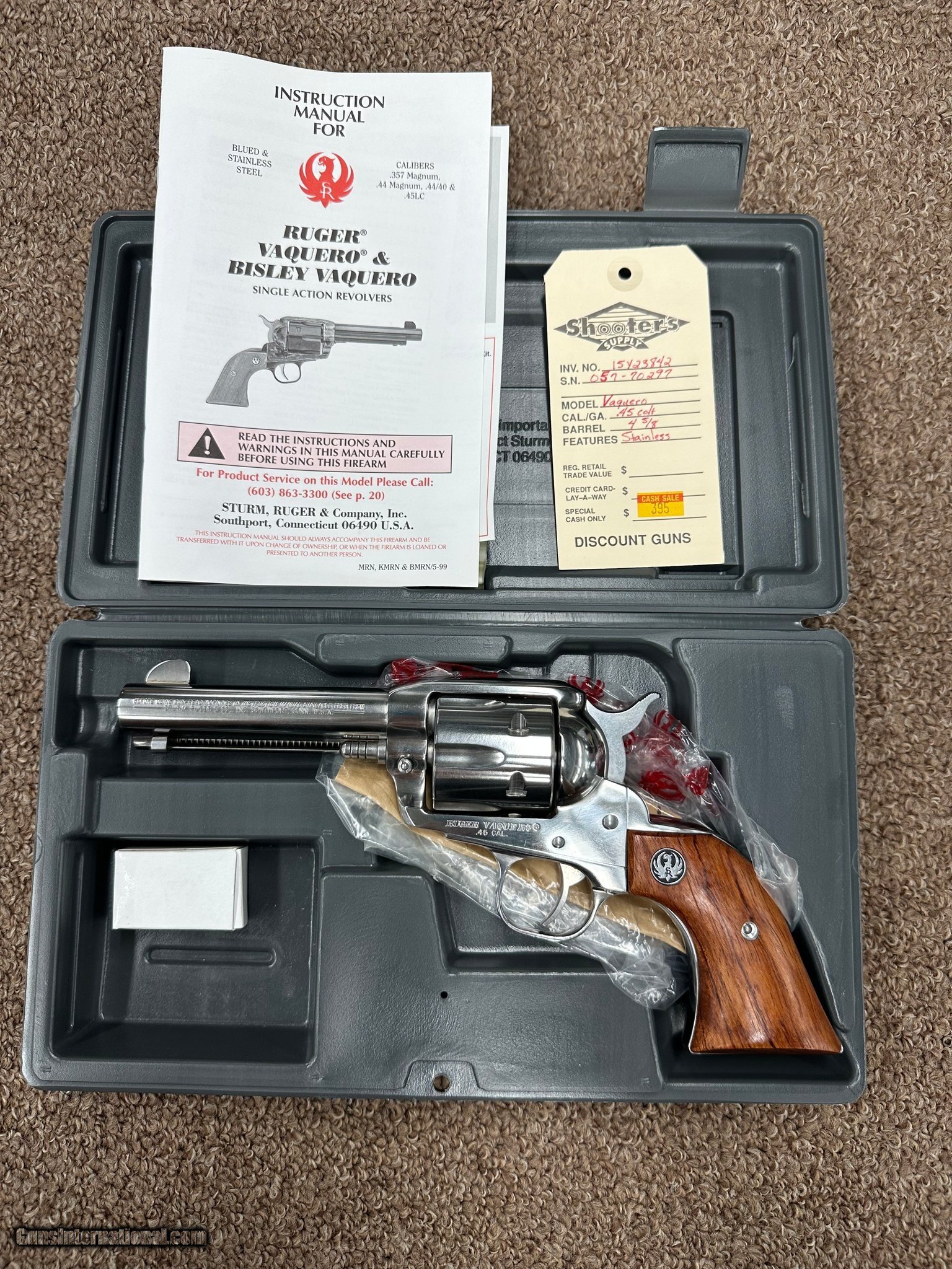 Description: Guns Listing ID: 555184 Ruger Vaquero in excellent condition. Some light cylinder wear. Comes with original box and paperwork. Along with original price tag. Was a 2000 manufacture. SOLD Manufacturer: RUGER Model: Vaquero Caliber Info: .45 LC Condition: Used - Non-Certified Barrels: 4.5 BARREL Action: REVOLVER Finish: stainless |