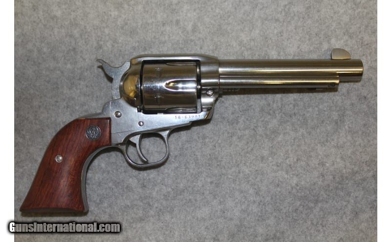Description: Made for all the cowboys and cowgirls out there, the Ruger Vaquero Standard .45 Colt LC Revolver boasts a Western-style rosewood grip. It comes with a beveled cylinder and a reverse indexing pawl. Medium-frame build with a cold hammer-forged barrel and a high-gloss, stainless-steel finish. Fixed blade front sight. .45 Long Colt SOLD Barrels: 5.3 in Weight: 2.5 lbs Sights: Machine BladeFront/Square Notch Rear Item Location: Farmington, UT |