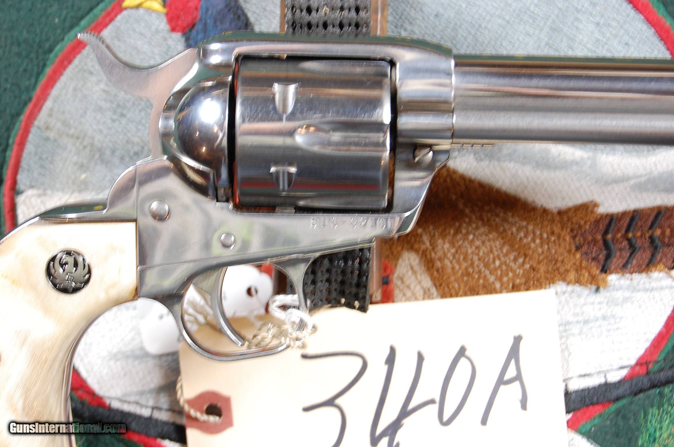 Description: Here we have a rare Ruger Vaquero in a nickel finish with Stag grips, a 7.5" barrel and in 95% condition. SOLD Manufacturer: Ruger Model: Vaquero Serial Number: 510 02101 Caliber Info: .45 LC Condition: 95% Metal Condition: 955 Wood Condition: 95% Bore Condition: Excellent |