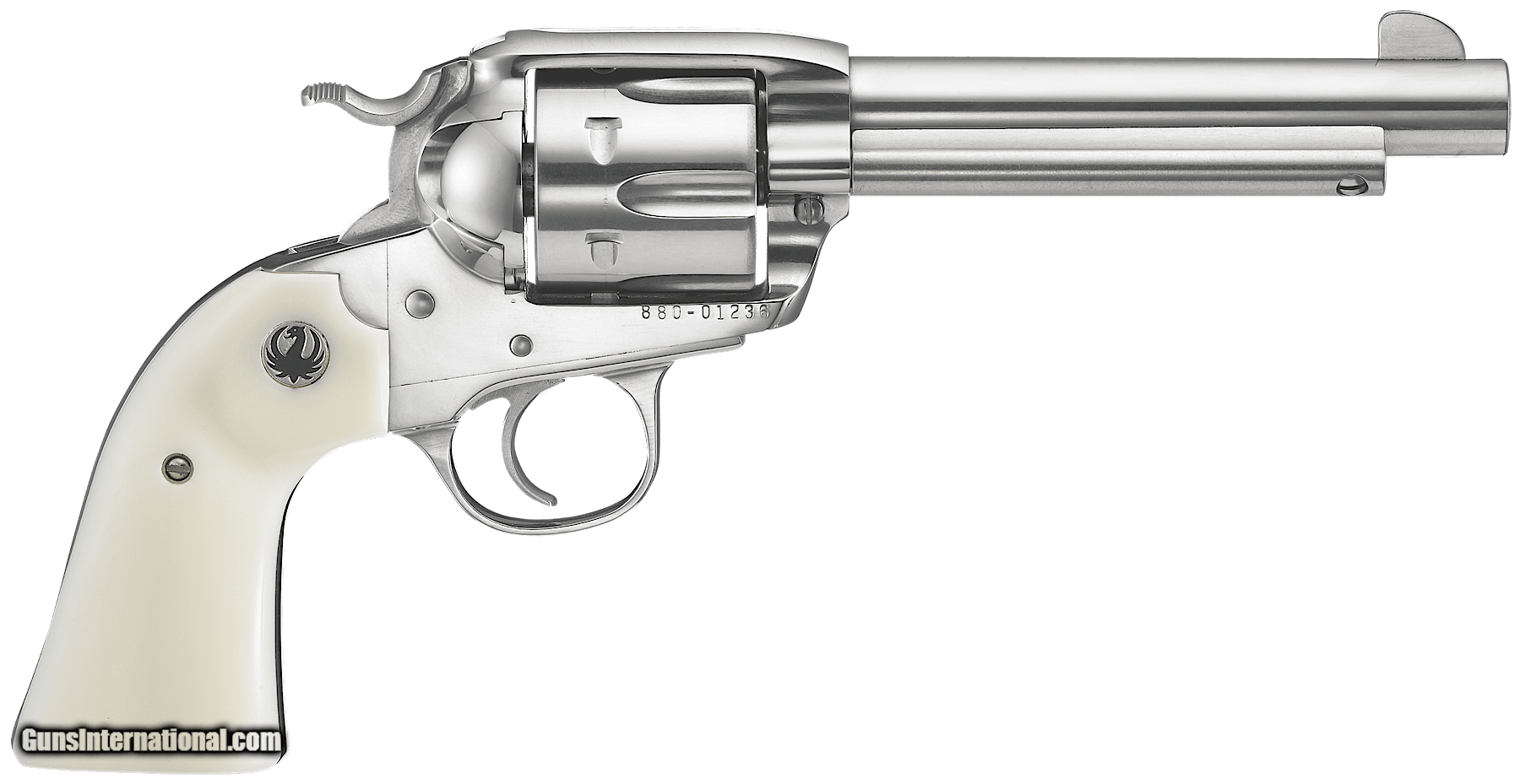 Description: Guns Listing ID: 921430 Combining the look and feel of the old West with new features the Ruger Vaquero Bisley is a rugged yet smooth single-action six-shot revolver. The traditional western-style grips are made of simulated ivory while a larger crescent-shaped ejector rod adds to the classic styling and the patented reverse indexing pawl makes for easy loading and unloading. The patented transfer-bar design helps guard against accidental discharge and the cold hammer-forged barrel of the Vaquero Bisley is durable and easy to clean. Details Caliber 357 Mag - Grips Simulated Ivory - Front Sight Blade - Barrel Length 5.50 - Material Stainless Steel - Capacity 6 - Rear Sight Integral - Twist 116 RH - Finish High-Gloss Stainless - Overall Length 11.12 - Weight 45 oz. - Grooves 8 - Traditional western-style hand-filling grip has long been acknowledged as one of the most comfortable and natural pointing of any grip style. - Patented reverse indexing pawl allows for easier loading and unloading while the traditional beveled cylinder simplifies holstering. - Patented transfer bar mechanism and loading gate interlock provide an unparalleled measure of security against accidental discharge. - Handsome larger crescent-shaped ejector rod head boasts traditional form perfect for every cowboy or cowgirl. - Cold hammer-forged barrel results in ultra-precise rifling that provides exceptional accuracy longevity and easy cleaning. - Bisley-style hammer SOLD Manufacturer: RUGER Model: VAQUERO BISLEY Caliber Info: .357 MAG Condition: new Barrels: 5.5 BARREL |