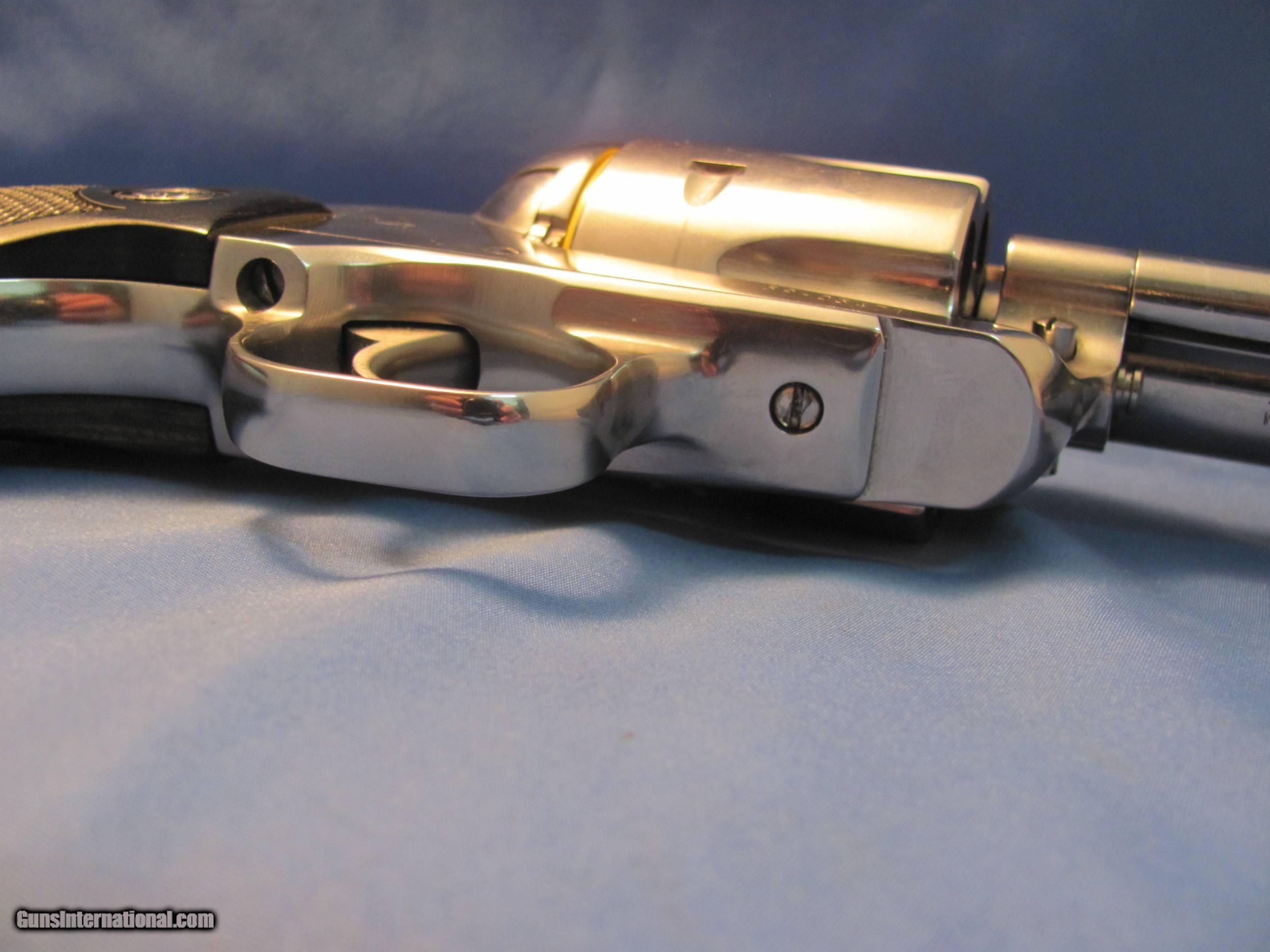 Description: THIS IS A RUGER VAQUERO BRIGHT STAINLESS 44MAG SINGLE ACTION 6-SHOT 3.75” REVOLVER FLUTED CYLINDER THE BRIGHT STAINLESS STEEL METAL WOULD RATE EXCELLENT WITH ONLY SLIGHT FLAWS THE BORE OF THE 3.75" BARREL IS BRIGHT, SHINY AND EXCELLENT THE FACTORY BLACK LAMINATE FIGHTER STYLE BIRD HEAD GRIPS ARE EXCELLENT FRONT BLADE AND REAR GROOVE SIGHTS SHE COCKS, CLICKS AND SLAMS LIKE SHE SHOULD AS SHOWN IN THESES MANY CLOSE UP PHOTOS WITH BOX, LOCK, MANUAL AND NOTHING ELSE IF YOU HAVE QUESTIONS OR NEED EXTRA PICTURES ASK BEFORE, NOT AFTER YOU BUY. DUE THE FAST PACE AND VOLATILITY OF THE CURRENT GUN MARKET THERE IS NO INSPECTION PERIOD OFFERED OR GIVEN SO BUY KNOWING THAT UNDERSTAND THAT WE WILL PUT A SIGNATURE ON THE PACKAGE SO IT WONT GET LEFT ON A PORCH BUYER PAYS A FIXED AMOUNT OF 35.00 INSURED SHIPPING TO THE LOWER MAINLAND STATES, ALASKA, HAWAII OR PUERTO NO SHIPMENTS OUTSIDE THE USA. MISSOURI RESIDENTS DO PAY A 8.575% SALES TAX. NO EXTRA CHARGE FOR CREDIT CARDS BRANDON'S GUN TRADING CO LLC 321 EAST 20TH ST JOPLIN MO. 64804 (417)-623-8787 FAX (417)-623-2326 9-5 TUESDAY-SATURDAY CENTRAL TIME WE ARE ALSO CLOSED THE 1'ST SATURDAY OF EVERY MONTH AND HOLIDAYS. OUR INVENTORY REFERENCE : SAFE 4 PLEASE NOTE, UPS SERVICE HAS GOTTEN SO BAD UNDER CURRENT MANAGEMENT THAT WE WON’T SHIP UPS UNLESS WE ABSOLUTELY HAVE TOO. WHEN WE DOUBLE PACK, INSURE, ADD SIGNATURE, USE GOOD BOXES AND UPS EVEN NOTES THEY DAMAGED THE ITEM AND THEY STILL WONT PAY SO AFTER 27 YEARS WE ARE DONE WITH UPS ALSO, ANY INSURANCE WE DO PUT ON OUR PACKAGES IS VOID IF YOU OR YOUR DEALER THROWS AWAY THE BOX, ANY PACKING MATERIALS OR FAILS TO PICTURE AND NOTIFY US AND THE SHIPPING COMPANY IMMEDIATELY SOLD Rifle Caliber: .45 Colt Handgun Caliber: .45 Colt Manufacturer: RUGER Model: VAQUERO Condition: EXCELLENT |